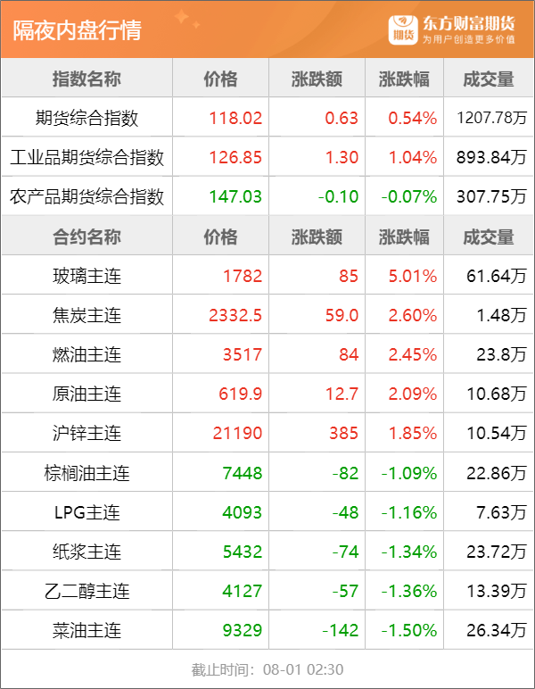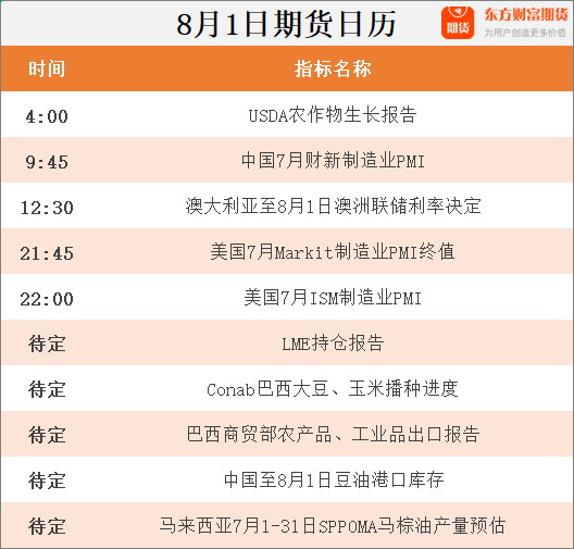 东方财富期货早餐 8月1日 周二