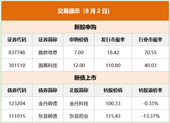 比亚迪:7月新能源汽车销量262161辆,上年同期销量162530辆;7月海外销售新能源乘用车合计18169辆。 江淮汽车:天风国际证券分析师郭明錤发文称华为正在和江淮汽车合作,开发售价在100万元的问界MPV,预计在2024年第2季度量产,销量目标为上市首年交付5万辆。对此,江汽集团相关工作人员称没有接到相关通知,江淮汽车证券部相关工作人员则称不知道此事。 赛力斯:7月,销量12039辆,同比下降45.99%;本年累计销量104202辆,同比下降29.57%。其中,新能源汽车销量为6934辆,同比下降47.83%;本年累计销售51734辆,同比下降12.19%。 南山铝业:与中航重机签署《关于山东宏山航空锻造有限责任公司80%股权的转让协议之补充协议》,确定标的公司80%股权最终的转让价格为13.18亿元。 海思科:公司于近日收到国家药监局下发的《药品补充申请批准通知书》,经审查,富马酸卢帕他定片通过仿制药质量和疗效一致性评价。富马酸卢帕他定片用于成年人和青少年(大于12岁)过敏性鼻炎和荨麻疹的对症治疗。 力帆科技:7月销售汽车整车5467辆,同比增长0.9%;其中新能源汽车3578辆,同比增长1.85%。1-7月合计销售汽车22,449辆,同比下降2.1%。 秦港股份:预计2023年半年度实现归属于上市公司股东的净利润与上年同期(法定披露数据)相比,将增加1.85亿元到2.21亿元,同比增加26%到31%。本期业绩同比增长的主要原因是公司吞吐量的增长。 华新水泥:上半年实现营业总收入158.32亿元,同比增长10.02%;归属于上市公司股东的净利润11.93亿元,同比下降24.85%。上半年,由于海外水泥销量增长,公司实现水泥及商品熟料销量2995.14万吨,同比增长2.13%(其中:国内水泥及商品熟料销量同比下降0.76%)。上半年骨料销售5051.24万吨,同比增长103.30%;混凝土销售1094.97万方,同比增长82.31%。 高德红外:公司近日与客户签订了某型号完整装备系统总体产品及某型号红外热像仪订货合同,合同金额为2.75亿元,占公司2022年经审计营业收入的10.87%。 雅化集团:2020年下属全资子公司雅安锂业与美国特斯拉公司签订电池级氢氧化锂供货协议。双方拟在原协议的基础上以雅安锂业为主体与特斯拉修订并延长原协议。2023年7月31日,双方共同签署《修订和重述的电池原材料生产定价协议》。合同履行期限为2023年8月1日至2030年12月31日,交易数量合计约20.7万吨-30.1万吨。 艾德生物:公司持股5.14%的股东厦门科英投资合伙企业(有限合伙)拟以大宗交易的方式,减持公司股份不超过41.3万股(占公司当前总股本剔除回购专用账户中的股份数量后的0.1%)。