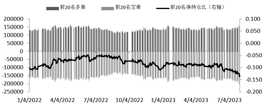 周二A股市场延续前一交易日的振荡走势,上证指数围绕3290点一线波动,最终收报于3290.95点。当天,期指四个品种走势分化,其中IC表现突出,主力合约涨0.03%,而IF、IH、IM主力合约均收跌,跌幅分别为0.52%、0.42%和0.15%。基差方面,期货依旧保持升水状态,IF、IH、IC、IM主力合约分别升水10.6、7.31、0.12和1.59点。 期指持仓量显著下滑,四个品种共计减仓17968,至847370手。各品种持仓量不同程度减少,其中IF减仓4052手,持仓量降至239859手;IH减仓5618手,持仓量降至141436手;IC减仓4115手,持仓量降至278177手;IM减仓4183手,持仓量降至187898手。 与周一相比,期指各品种前20席位持仓量均有下滑。IF多头减仓4153手、空头主力减仓1761手,净空持仓量升至48832手;IH多头减仓4802手、空头减仓4145手,净空持仓量升至31706手;IC多头减仓4127手、空头减仓4042手,净空持仓量升至11329手;IM多头减仓2579手、空头减仓3361手,净空持仓量降至11078手。 具体席位方面,IF多数席位持仓量变化有限。多头方面,中信建投期货席位增仓147手,净多持仓量增至1427手;招商期货席位增仓187手,净多持仓量升至559手;光大期货席位增仓126手,净多持仓量升至2119手。与此同时,南华期货席位减仓169手,净多持仓量降至4082手。空头方面,中金期货席位增仓232手,持仓量升至10263手;中粮期货席位增仓133手,持仓量升至2498手。与此同时,瑞银期货席位减仓209手,净空持仓量降至6355手。