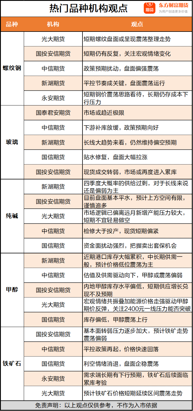 热门品种机构观点![]() 黑色系期货总体来看预计短期煤焦期货价格或以震荡下跌运行为主(中泰期货) 短期内需要注意钢材价格反向波动(上涨)的风险(五矿期货) 农产品期货国内豆粕价格高位震荡 暂时难以单边下挫(光大期货) 生猪要消化立秋后的季节性供给压力(混沌天成期货) 有色/贵金属期货美国6月JOLTS职位空缺超预期缩小 贵金属价格延续震荡调整(美尔雅期货) 工业硅若投机力量推动行情反弹到高位 偏离基本面过多可伺机沽空(弘业期货) 能化期货投资者对后期走势预期出现分化 国际油价或再度陷入区间震荡状态(中财期货) 供需偏弱背景下 甲醇上升空间有限(西南期货) (文章来源:东方财富研究中心) (责任编辑:admin) |