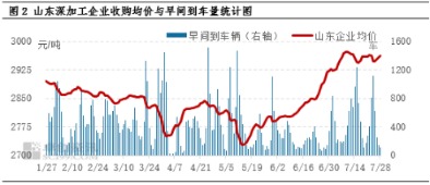 7月中旬开始,华北部分贸易商陆续顺价出货,加之东北粮补充,玉米有效供应略增;下旬需求略有减少,供需相互制衡,价格窄幅震荡调整。随着春玉米陆续上市补充,8月份玉米价格或在一定程度上受冲击。 7月12日开始,华北玉米价格窄幅震荡调整,市场主流价格在2870.0-2882.5元/吨,调整空间在20元/吨以内。玉米有效供应略增,需求稍有回落,玉米供需关系有所缓和。 ![]() 有效供应略增 随着价格逐渐涨至贸易商心理预期,贸易商出货积极性提高,玉米有效供应略增,截至28日,华北地区部分贸易商库存较月初减少30%-40%。同时,中旬开始华北玉米与东北玉米的价差维持在166-171元/吨,东北玉米持续流入华北市场,增加了华北玉米的有效供应。11-28日山东深加工企业晨间剩车为547辆,较7月上旬的367量增加180辆,增幅49.05%,也在一定程度上反映出中旬开始华北市场玉米供应略有增加。 ![]() 需求支撑略有减弱 深加工需求:上旬深加工企业玉米原料库存多低于正常水平,深加工企业多积极补库,需求相对偏强。中旬开始,随着到车持续增多,深加工企业库存逐渐恢复,同时部分企业检修,玉米淀粉企业平均开工率下降至54.08%,较6月下跌4.35个百分点,玉米采购量缩减,深加工企业对玉米的需求略有减弱。 饲用需求:因小麦与玉米的价格持续倒挂,小麦饲用优势持续存在,截至28日,华北地区小麦、玉米的价差为-89.19元/吨。饲料企业以使用小麦及消化玉米库存为主,玉米采购量不大。 供需继续博弈后市玉米行情稍显弱势 供应方面,目前华北地区玉米余粮继续减少,部分地区余粮基本见底,短期内玉米有效供应仍偏紧;中旬开始,华北春玉米零星上市,将在一定程度上对玉米货源形成补充,但鉴于春玉米供应量相对有限,预计8月份华北玉米供应面难有明显改善。 需求方面,饲用方面,因8月份仍处于饲料生产淡季,同时目前饲料企业玉米用量均不大;养殖户对饲用玉米多随用随采,玉米饲用需求或维持相对低位。深加工方面,深加工企业持续亏损,对高价玉米的接受程度或有限,对玉米或维持刚需采购。 综合来看,8月上旬玉米价格或窄幅震荡;中下旬随着玉米供需关系缓解,华北玉米价格或窄幅震荡下调。 (作者:张文萍,卓创资讯分析师) (文章来源:新华财经) (责任编辑:admin) |