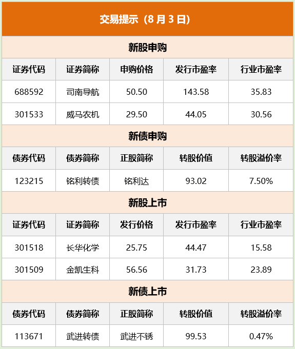 贵州茅台:上半年公司实现营业收入695.76亿元,同比增长20.76%;实现归属于上市公司股东的净利润359.80亿元,同比增长20.76%。 隆基绿能:公司上半年实现营业总收入646.64亿元,同比增长28.26%;净利润91.79亿元,同比增长41.63%。 恒瑞医药:网络有传言称恒瑞医药“某地办公室被端”、“数据被拿走”等。对此,恒瑞医药方面回应称,公司及下属分子公司,以及所有派驻机构目前没有该情形。 永辉超市:据报道,京东近期正与永辉接洽收购事宜,双方进行了至少一轮初步沟通,暂未达成一致。对此,京东官方回应称,目前没有这个意向。永辉超市公告,公司不存在上述事宜、也不存在其他应披露而未披露的事项。 华为:鸿蒙系统本周将迎重大升级。8月4日至6日,华为开发者大会将在广东东莞松山湖举办,鸿蒙HarmonyOS 4将正式亮相。华为常务董事、终端BG CEO余承东在微博分享视频,向用户“剧透”了HarmonyOS操作系统的一项重磅功能,HarmonyOS的小艺能够根据用户的需求自动生成文案等内容。 云图控股:公司全资子公司雷波凯瑞公司以7.6亿元成功竞得阿居洛呷磷矿探矿权。此次竞拍成功后,公司磷矿采矿和探矿面积将扩至11.9平方公里左右,进一步夯实磷矿资源储备。 雅化集团:公司下属全资子公司雅安锂业与宁德时代签订电池级氢氧化锂采购协议,约定从2023年8月1日起至2025年12月31日,宁德时代向雅安锂业总计采购41000吨电池级氢氧化锂产品。 三安光电:公司间接控股股东福建三安集团及其一致行动人拟通过集中竞价交易方式,增持公司股份,合计增持金额为5000万元-1亿元,此次增持计划不设价格区间。 龙蟠科技:公司拟通过控股孙公司山东锂源在山东省菏泽市投资开发建设“8万吨磷酸铁前驱体项目”,项目总投资额约5亿元。 云天化:拟以1.5亿元-2亿元回购股份,回购价格不超过25元/股。回购股份拟用于公司未来员工持股计划或股权激励。