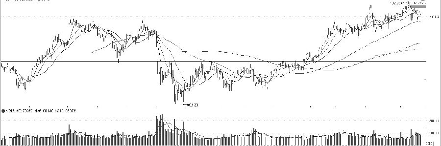 十债加权自上周创出年内新高后转为振荡运行。均线方面,MA5与MA10拐头向下、MA20开始走平、MA60继续向上,十债加权从短周期开始修正。指标方面,MACD绿柱走扩,但DIF与DEA仍在零轴之上,表明上行动力边际转弱。整体上,十债加权下方MA60的移动支撑线较为有效,短期维持区间运行。(招商期货 于虎山) (责任编辑:admin) |