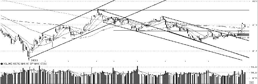 IF加权本周前3个交易日呈现冲高回落态势,并对上周五的大幅上涨进行修正。均线方面,MA5、MA10、MA20拐头向上并发散,MA60即将转为向上,IF加权中短期均线修复较为充分。指标方面,MACD红柱收窄,而DIF与DEA仍在零轴之上,表明IF加权依然存在上行动力。当前IF加权重心不断上移,上方压力在4月19日与今年年内高点附近。 IC 区间运行