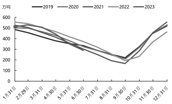 图为棉花商业库存 从需求端来看,上半年纺织原料需求较往年有所回落,受到海外经济下行的压力,国内弱复苏格局未有突破。数据显示,1—6月我国纱线及坯布产量分别为1103.1万吨、151.9亿米,累计同比分别下降16.8%、15.8%,为近5年最低水平。受去年国内棉花丰产的影响,在新季棉花大量上市前,国内棉花很难产生供需缺口,原料价格上涨更多基于新季棉花减产的预期,后市要防范需求端不及预期的风险。 整体来看,棉花供需双方的博弈持续,盘面波动或加剧,可考虑买入跨式期权等做多波动率。中长线多单减仓,少量继续持有,高位建议观望,回落后可回补中长线多单。