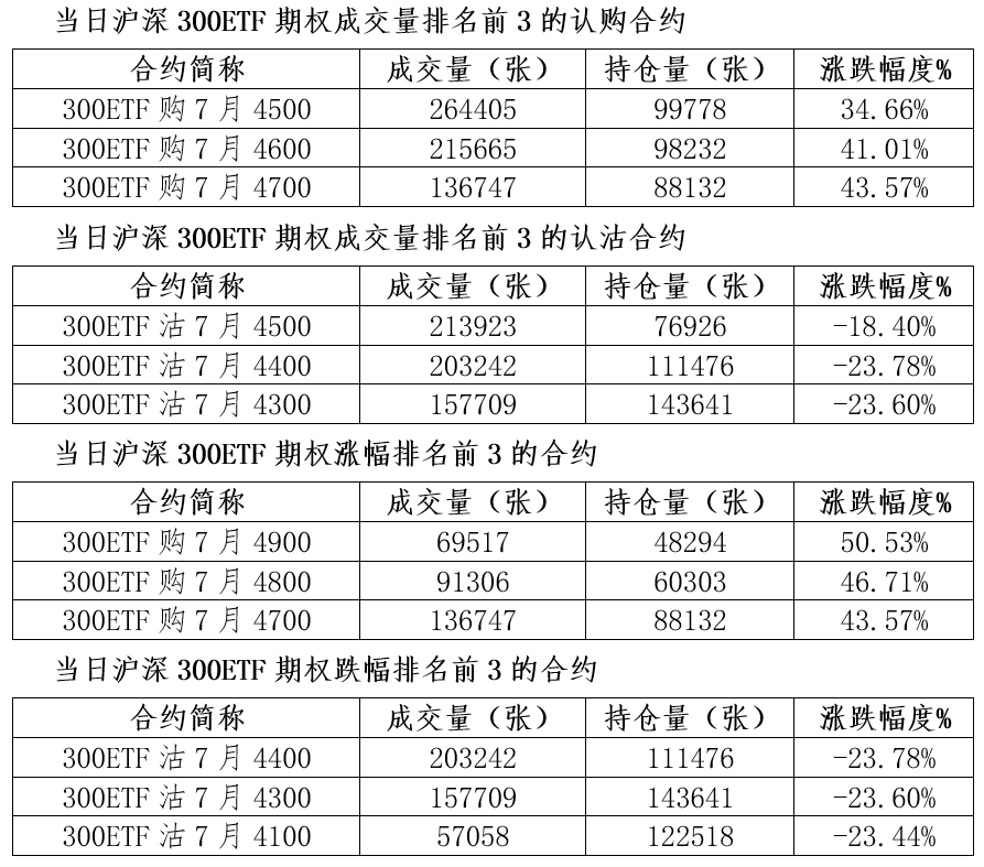 注:(1)涨跌幅度=(期权合约当日结算价-期权合约前结算价)/期权合约前结算价; (2)认沽认购比=认沽期权合约总成交量/认购期权合约总成交量; (3)当日结算价小于0.001元的合约及当日新挂合约不计入合约涨跌幅排名; (4)行权日,到期合约不计入当日成交量和涨跌幅排名。 免责声明: 以上信息仅反映期权市场交易运行情况,不构成对投资者的任何投资建议。投资者不应当以该等信息取代其独立判断或仅依据该等信息做出投资决策。对于投资者依据本信息进行投资所造成的一切损失,上海证券交易所不承担任何责任。 (责任编辑:期权号管家) |