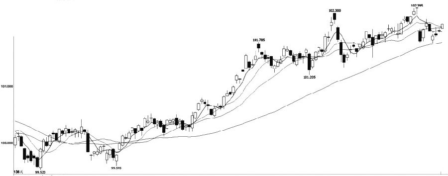 十债加权本周价格继续在高位整理,下方60日均线位置有一定支撑。量能方面,本周价格高位整理过程中成交量变化不大,持仓量维持小幅增长趋势。指标方面,短期均线相互黏合在一起,60日均线延续多头运行,MACD指标形成两次“顶背离”形态,且快慢线交出死叉后继续走弱。综合来看,十债加权日线陷入高位整理,且技术指标出现背离,一旦向下跌破60日均线支撑,建议偏弱思路对待。(中原期货 刘培洋) (责任编辑:admin) |