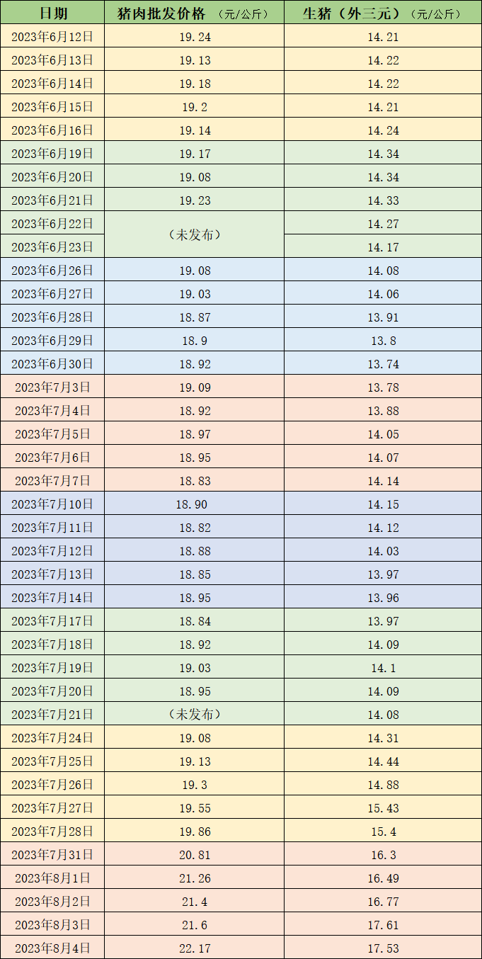 据农业农村部监测,8月4日,全国农产品批发市场猪肉平均价格为22.17元/公斤,与上周五(7月28日)的19.86元/公斤相比,上涨11.6%。本周的平均价格为21.45元/公斤,与上周19.38元/公斤的均价相比,上涨10.7%。 本周国内生猪价格快速上涨。据中国养猪网的数据,8月4日,生猪(外三元)价格为17.53元/公斤,与上周五(7月28日)的15.4元/公斤相比,上涨13.8%。从一周均价来看,本周生猪均价为16.94元/公斤,与上周14.89元/公斤的均价相比,上涨13.8%。 值得一提的是,8月3日生猪价格达17.61元/公斤,创今年以来新高。 ![]() 近期的猪肉和生猪价格。制表澎湃新闻 据卓创资讯监测,供应方面,本周全国生猪交易均重止跌微涨。随着猪价连续上涨,部分养殖方压栏增重,叠加压栏大猪出栏,生猪出栏体重止跌微涨。卓创资讯监测全国生猪平均交易体重121.00公斤,环比微涨0.17%。需求方面,本周屠宰企业开工率环比微跌。周内多地受降雨影响,且恰逢月末月初,规模场生猪出栏量有限,散户仍有惜售情绪,屠宰企业收购不畅。同时猪肉价格上涨后终端需求量缩减,屠宰企业订单减少,开工率小幅下跌。平均开工率29.93%,环比下跌0.10个百分点。 8月4日,国家统计局发布2023年7月下旬流通领域重要生产资料市场价格变动情况。其中,生猪(外三元)价格报15.1元/公斤,环比上涨8.6%,与7月中旬相比,每公斤上涨1.2元。 大越期货认为,从供应端来看,月内养殖场出栏计划完成尚可,且出栏体重不大,肥猪供应紧俏,价格偏高,因此养殖场出栏压力不大,散户存在惜售心理。近两日全国部分地区有降雨可能,出栏难度加大,加之月初养殖单位出栏积极性不高,供应对猪价有利好提振。从需求来看,终端消费暂无利好支撑,屠宰厂仍按需采购,鲜销率多维持在70%- 80%之间,因此屠宰量变化不大。 东吴期货认为,目前南北地区标猪价格差扩大,大猪短缺,企业惜售扛价,部分二育进场,但情绪偏谨慎,补栏意愿一般,目前白条冻品等走货相对缓慢,整体需求一般,受到涨价影响,屠宰量持续走低,整体市场猪源依然较为充足,短期供需错配。 卓创资讯预测下周,供应方面,目前生猪市场养殖单位出栏量呈现动态平衡态势,由于本周涨势较快,部分高价生猪走货难度加大,养殖场有降价走量的可能。部分市场仍有走二次育肥的操作,在一定程度上缩减标猪供应。需求方面,由于肉价持续上涨,终端市场对高价鲜品猪肉的接受能力减弱,订单量难涨,屠宰量上涨空间有限。但价格快速上涨后部分企业有顺势出库冻品的动作,屠宰企业压价操作相对较少。预计未来一周生猪行情或先跌后涨再降,整体仍然高位运行。 (文章来源:澎湃新闻) (责任编辑:admin) |