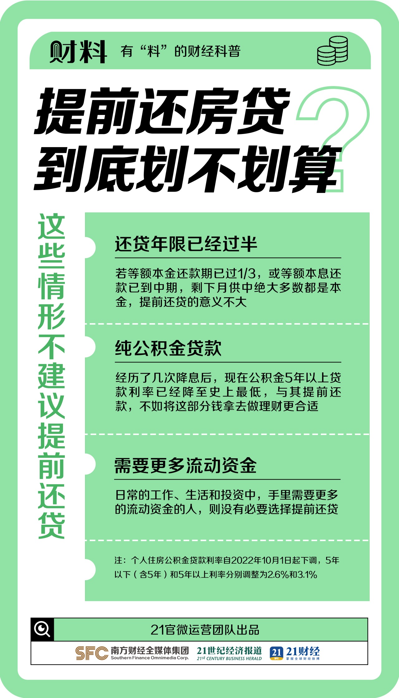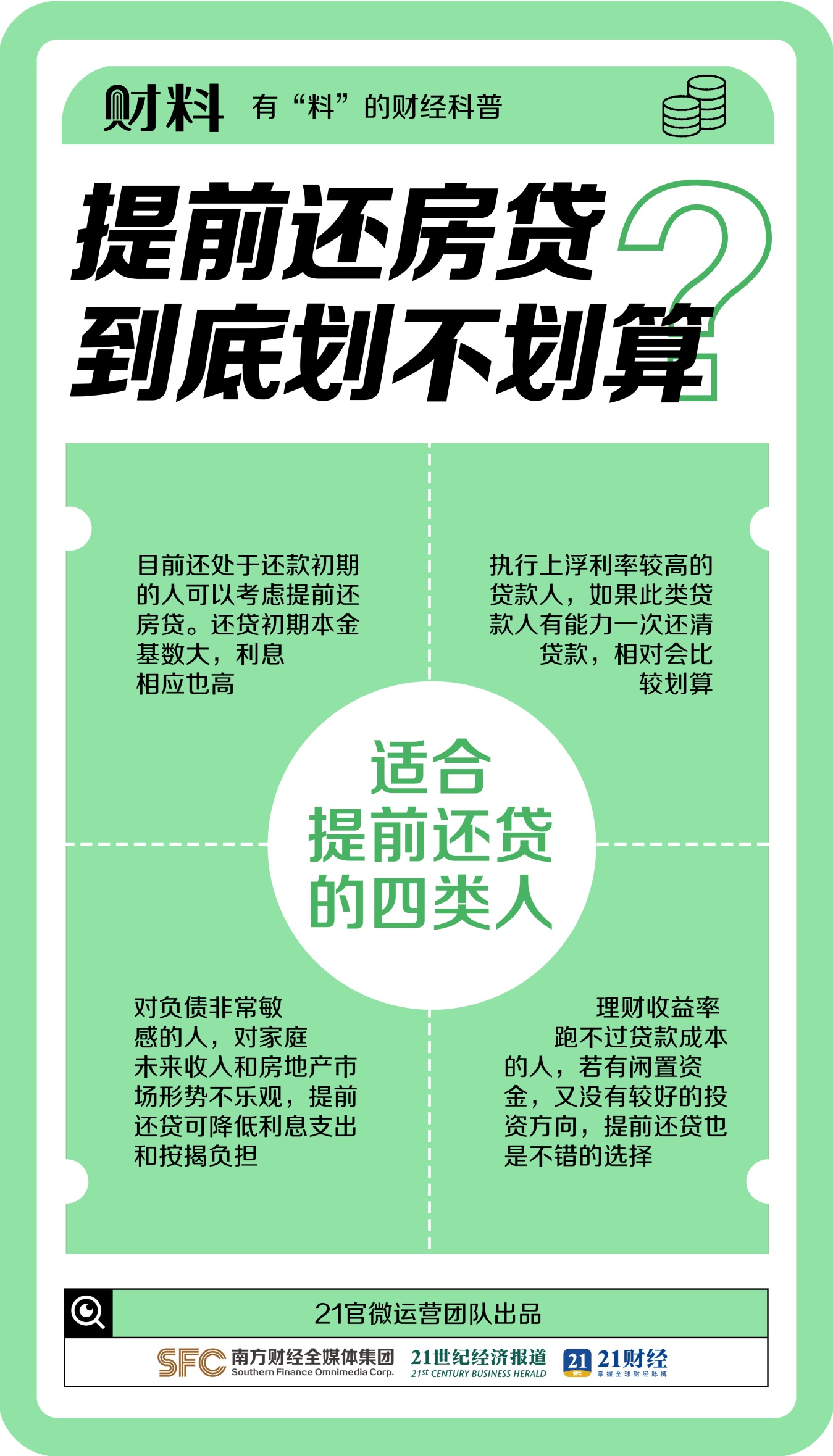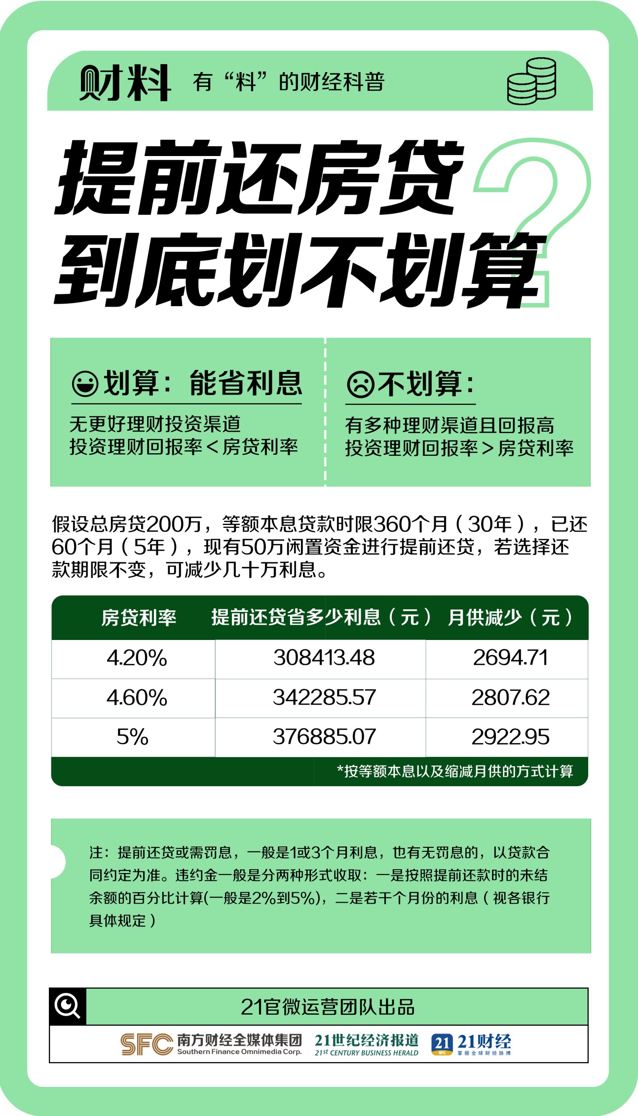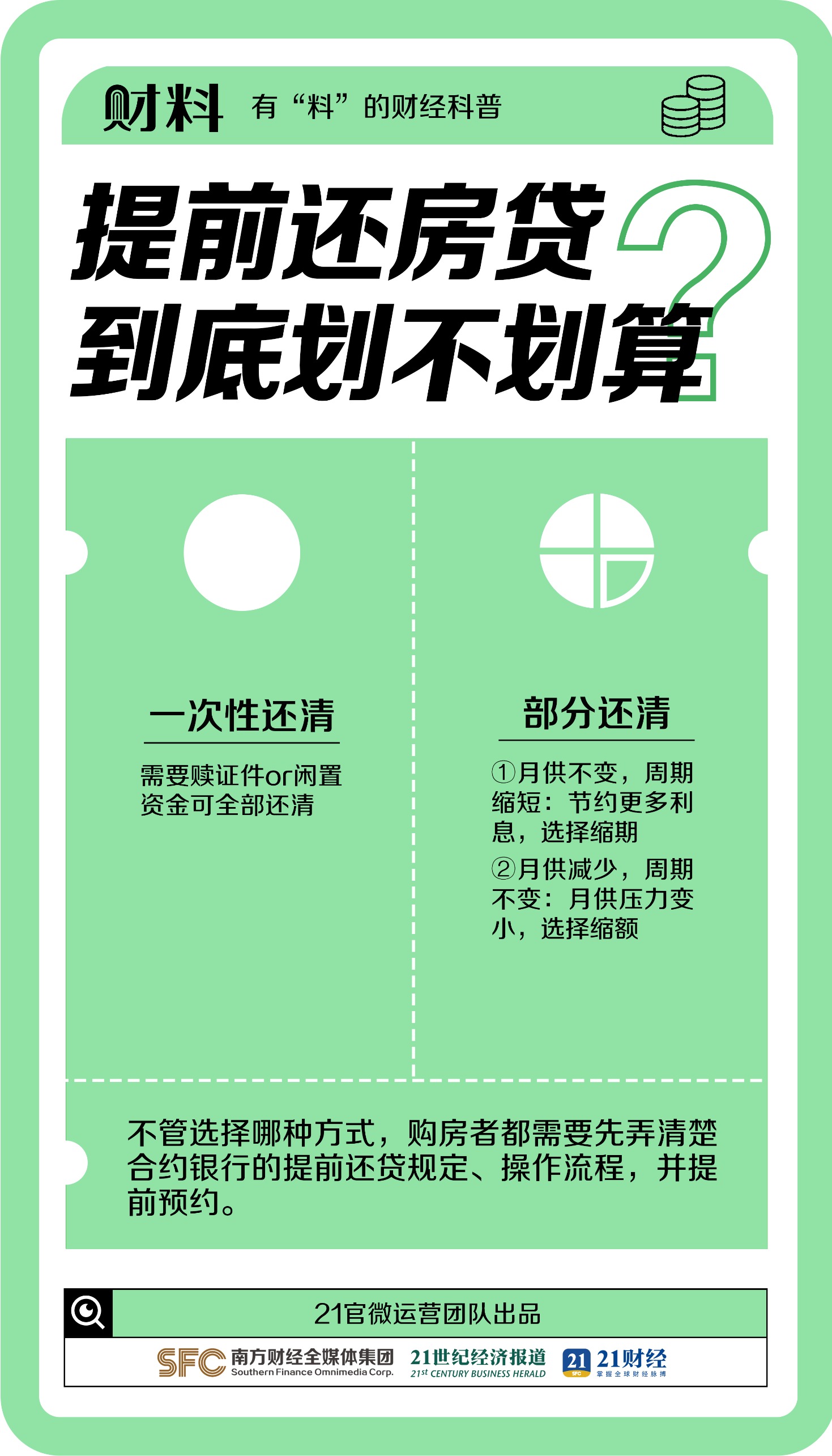 提前还房贷划算吗?这样操作能省几十万! 21世纪经济报道 08月07日 2023年来“提前还房贷”屡掀高潮,近日央行再提降低存量房贷利率,提前还贷是否真的划算呢?提前怎么还房贷最划算?提前多久最划算?哪些人适合提前还贷?缩期、缩额哪个还款方式更为合适?本期财料为你整理“提前还贷”的极简攻略!(文章来源:21世纪经济报道) (责任编辑:admin)