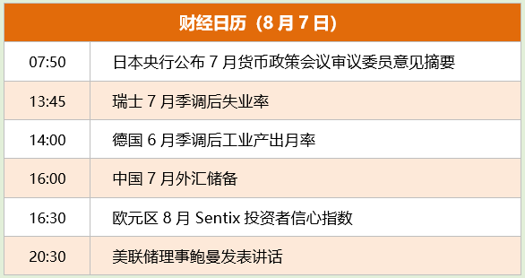 东方财富财经早餐 8月7日周一