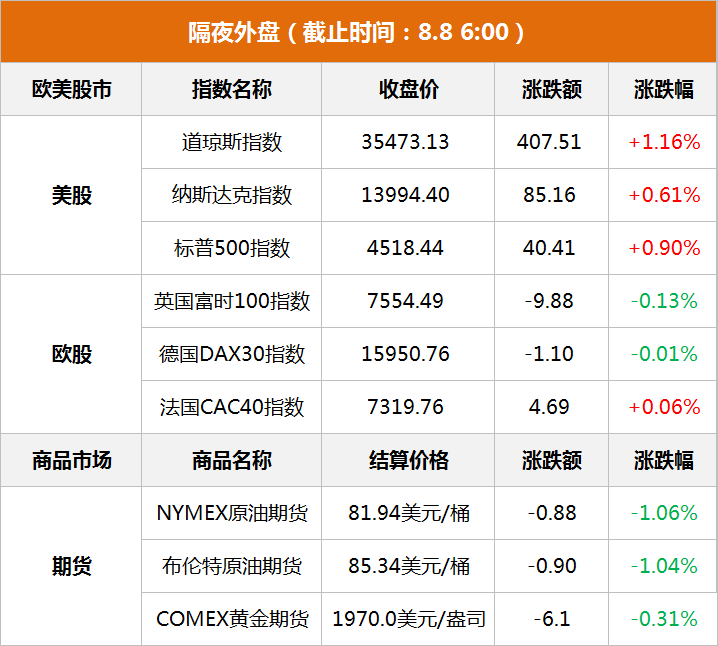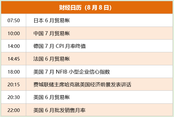 东方财富财经早餐 8月8日周二