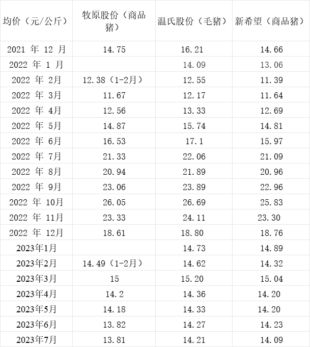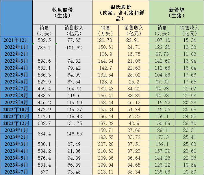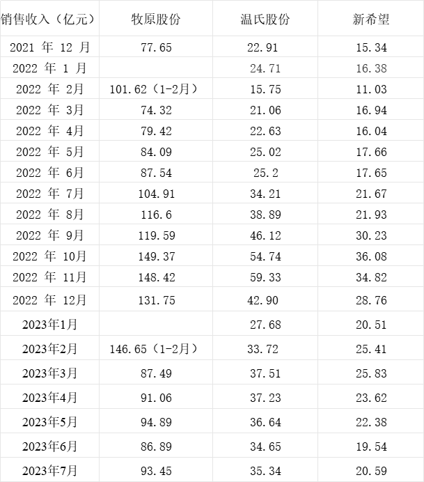 三大猪企7月生猪销量环比同比均增长 收入环比均增