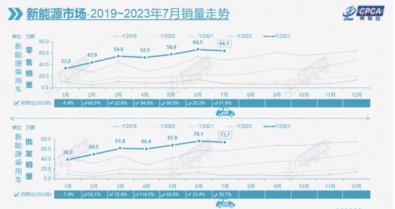 21世纪经济报道记者杜巧梅北京报道 “今年7月乘用车零售量是年内销量的次高点,在今年6月销量峰值之上环比温和回落,而历年7月月度销量一般是仅次于2月月度销量的最低点。”8月7日,乘联会秘书长崔东树在乘用车市场月度信息发布会上表示。 乘联会统计数据显示,2023年7月乘用车市场零售达到177.5万辆,同比下降2.3%,环比下降6.3%。 ![]() “随着7月车市进入国六B的延展实施期,上半年促销价格对销量的快速拉升已经结束,7月车市进入平缓促销增长期,促销对车市的拉动效果减弱。”崔东树进一步解释称。 需要注意的是,7月新能源车市场零售64.1万辆,同比增长31.9%,环比下降3.6%。今年以来新能源汽车累计零售372.5万辆,同比增长36.3%。 “新能源车销量在7月份出现环比下降主要是季节性因素导致的,7月份作为三季度的开局,销量环比下降是完全正常的表现,下半年的新能源汽车仍然是小幅增长的态势。”崔东树表示。 而在今年春节过早、预期刺激政策出台反复未果、国六老库存促销战风起云涌、期待中的老国六车延期半年和去年基数较低等综合因素的影响下,1-7月,国内乘用车累计零售1129.9万辆,同比增长1.9%。 不过,国家层面针对汽车行业销售的指引性政策频出,旨在进一步稳定和扩大汽车消费。 “工信部、商务部推动新能源车下乡,启动的‘百城联动’汽车节和‘千县万镇’新能源汽车消费季等活动效果较好,各地车展及发放消费券等丰富多彩的促消活动,厂商半年末冲刺力度强,均对提振消费信心有较好的增进效果。”崔东树表示。 新能源与出口双轮驱动,自主份额进一步提升 数据显示,7月份自主品牌零售94万辆,同比增长15%,环比增长1%。自主品牌国内零售份额为53.2%,同比增长5.8个百分点;2023年以来,自主品牌累计份额50%,相对于2022年同期增加4.4个百分点。 进退交锋,主流合资品牌7月份零售仅有59万辆,同比大幅下降28%,环比下降11%。其中,德系品牌零售份额20.8%,同比下降0.8个百分点;日系品牌零售份额15.8%,同比下降5个百分点;美系品牌市场零售份额达到7.7%,同比增长0.7个百分点。 此外,豪华车7月零售24万辆,同比下降22%,环比下降20%;但1-7月豪华车零售同比增长11%,市场表现较强。 “自主品牌在新能源市场和出口市场获得明显增量,头部传统车企转型升级表现优异,比亚迪汽车、吉利汽车、长安汽车、奇瑞汽车等传统车企品牌份额提升明显。”崔东树表示,汽车出口延续去年年末强势增长特征。 乘联会统计口径下的7月乘用车出口(含整车与CKD)31万辆,同比增长63%,环比增长4%。1-7月乘用车出口199万辆,同比增长81%。其中,7月新能源车占出口总量的28%。随着出口运力的提升,7月自主品牌出口达到24.8万辆,同比增长56%;合资与豪华品牌出口6万辆,同比增90%。 “伴随着中国新能源的规模优势和市场扩张需求,中国制造新能源产品品牌越来越多地走出国门,在海外的认可度持续提升。随着服务网络的不断完善,加之欧洲‘双反’风险尚未体现,新能源出口市场仍然持续向好。”崔东树告诉记者。 从自主出口的海外市场零售数据监控看,A0级电动车占比很高,是出口绝对主力,上汽等自主品牌在欧洲表现较强,比亚迪等在东南亚崛起;除了传统出口车企的靓丽表现,近期新势力出口也逐步启动,海外市场也有数据开始显现。 “今年汽车出口应该能够达到500万辆的规模,上半年出口已经达到234万。今年汽车出口已经进入一个全新的阶段。”崔东树告诉记者。 新能源方面,7月新能源车国内零售渗透率36.1%,较去年同期26.8%的渗透率提升9.3个百分点。 其中,自主品牌中的新能源车渗透率59.7%,豪华车中的新能源车渗透率20.3%,而主流合资品牌中的新能源车渗透率仅有5.1%。 ![]() 受新能源市场拉动的促进影响,部分车企表现分化明显。比亚迪纯电动与插混双驱动夯实自主品牌新能源领先地位;以长安、上汽、广汽、吉利等为代表的传统车企在新能源板块表现尤为顽强。在产品投放方面,随着自主车企在新能源路线上的多线并举,市场基盘持续扩大,厂商批发销量突破万辆的企业达到15家(环比增加2家,同比减少1家),占新能源乘用车总量88.1%(上月82.7%,去年同期83.4%)。 燃油车价格战影响消退,车市进入休整期 “8月共有23个工作日,相对去年持平。随着车市增长的结构性分化,部分企业传统车产能充裕,休高温假的时间较长,车市进入休整期。”崔东树预测,“换购增购需求带动新车和二手车市场持续较强,也将继续作为支撑汽车市场维持现有规模的基石。” 在崔东树看来,目前复杂多变的外部环境对消费信心影响较大,部分消费者的消费信心不强,首购需求表现远不如换购需求大。 不过,随着电动化的成本降低和效率提升,乘用车私车出行也是必然趋势。 一方面,新能源车市场全面加速,自主品牌经济型电动车(A00级+A0级)持续放量,形成对传统燃油车市场在该领域的补位替代效应;另一方面,新能源新品持续推出,覆盖广泛的价位段和车型品类,产品特点覆盖各细分市场人群,各主流厂商的推广积极性处于高位,增程和插混车型在市场面的接受度也有所提升,带来新能源的同比较大增量。 对于2023年全年,崔东树认为,汽车市场依然存在“产能过快增长”与“需求相对不足”之间的矛盾,致使上半年车市不断“内卷”。从电动车、插混到燃油车,从价格到产品,从营销到渠道,汽车市场面临着史无前例的白