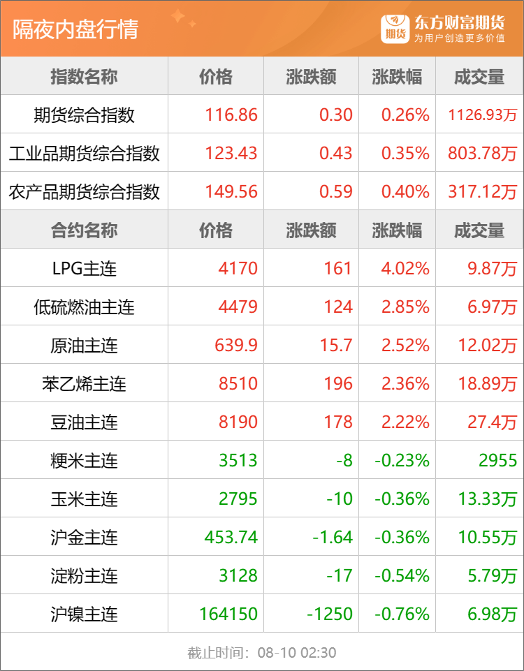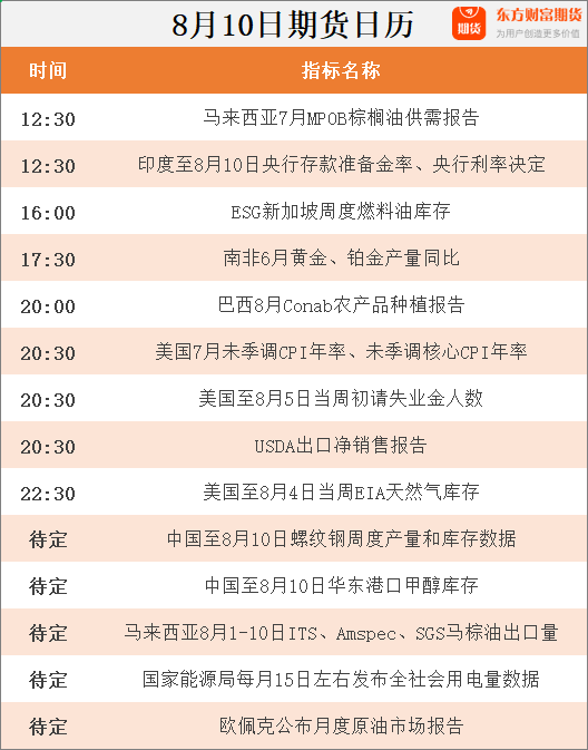 东方财富期货早餐 8月10日 周四