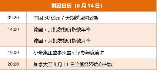 东方财富财经早餐 8月14日周一