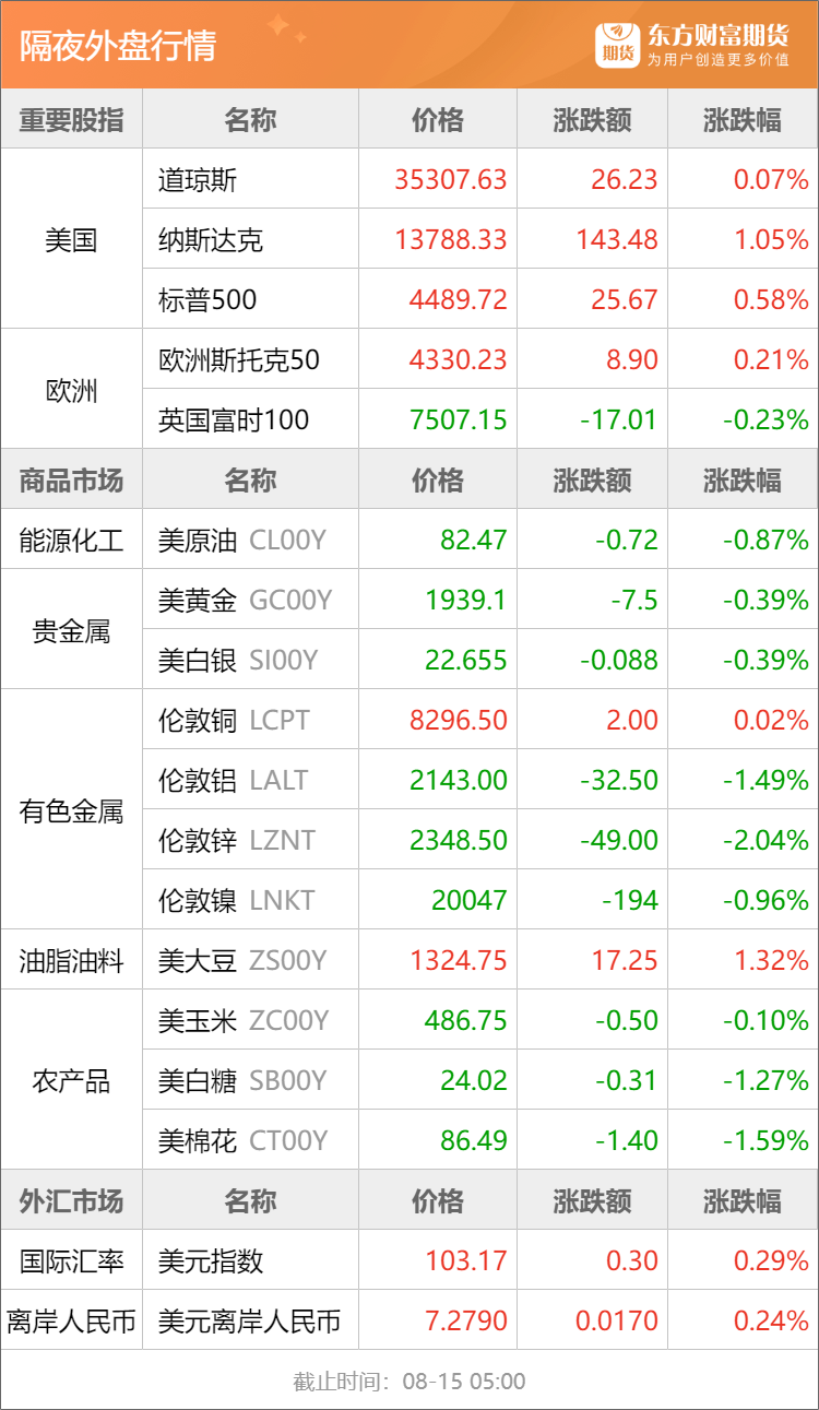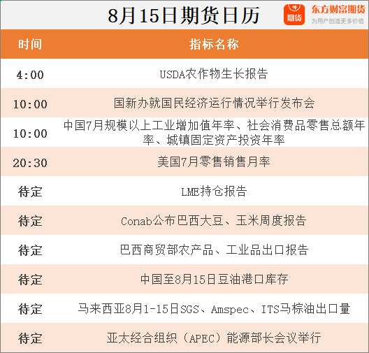 东方财富期货早餐 8月15日 周二