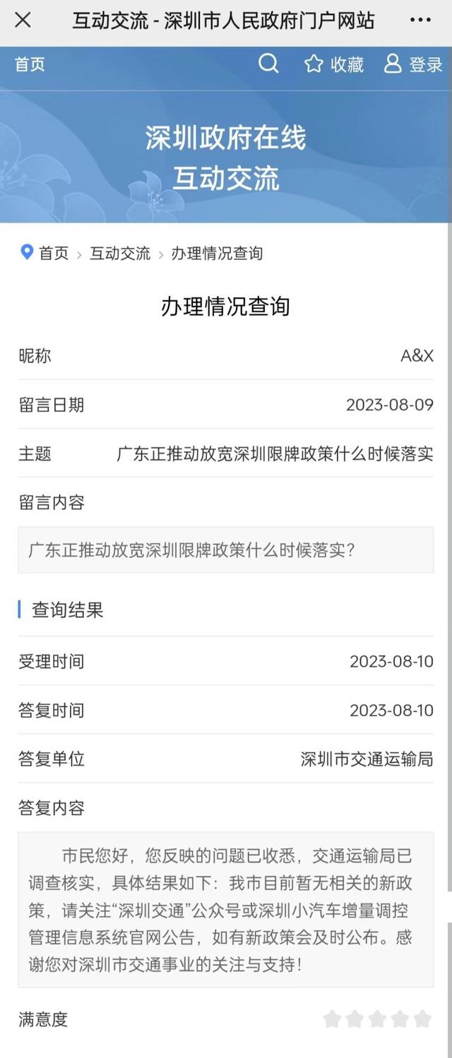 深圳市交通运输局回应研究推动放宽“限牌”:暂无相关新政策