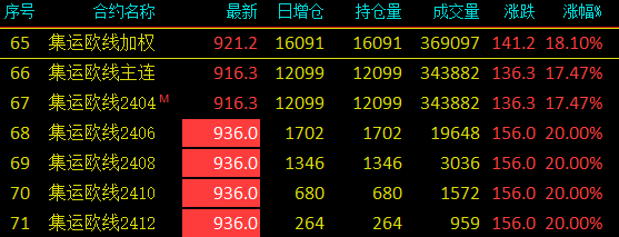 8月18日,我国首个航运期货品种——集运指数(欧线)期货在上海期货交易所(简称上期所)全资子公司上海国际能源交易中心(简称上期能源)正式挂牌交易。 集运指数(欧线)期货的上市意义非凡。中国证监会副主席方星海在上市仪式上连用三个“首个”来肯定这一“近年来最具创新性的期货品种”,即“全球首个依托我国指数开发的航运期货品种,我国期货市场首个服务类期货品种,首个在商品期货交易所上市的指数类、现金交割的期货品种,同时又是面向国际投资者开放的境内特定品种”。 上市首日,集运指数(欧线)期货表现惊艳:产业客户积极参与,市场成交活跃,多个合约涨停。券商中国记者采访发现,业界对于这一创新品种反响热烈,航运业迎来重要风险管理工具。 “航运指数期货是我国期货市场近年来最具创新性的期货品种” 方星海在集运指数(欧线)期货上市仪式致辞中提出,上市航运指数期货,有助于提升航运产业链企业的风险管理水平和国际竞争力,有助于提升市场对航运资源的配置能力,也有助于上海国际金融中心和国际航运中心建设相互促进。 方星海指出,航运指数期货是我国期货市场近年来最具创新性的期货品种。这是全球首个依托我国指数开发的航运期货品种,我国期货市场首个服务类期货品种,首个在商品期货交易所上市的指数类、现金交割的期货品种,同时又是面向国际投资者开放的境内特定品种。这个品种的平稳上市和成功运行将给我们带来许多启示,对我国期货市场创新发展、推进对外开放、提升市场运行质量具有重要的意义。 他还强调,上海期货交易所要继续坚持“四个敬畏,一个合力”以及“高标准、稳起步”原则,加强市场调查研究,持续优化合约规则,牢固树立风险意识,积极引导产业企业运用期货市场管理风险,促进航运指数期货功能有效发挥。希望班轮公司、货运代理公司、货主等行业相关主体以及期货市场其他参与者规范参与市场,共同推进航运指数期货平稳运行。 上期所理事长田向阳在上市仪式上表示,上市航运指数期货,是上海期货交易所深入贯彻落实党的二十大精神,增加期货市场品种供给、稳步推进对外开放、走好中国特色现代资本市场发展之路的具体实践,也是助力上海国际金融中心、国际航运中心建设,助力海洋强国、航运强国建设的重要举措。 “我国是航运大国,约95%的进出口贸易量通过海运完成,2002年至今,中国港口集装箱吞吐量均为世界第一。航运是个风险较高的行业,运价波动大,产业链上下游企业风险管理需求强烈。上市航运指数期货,有助于丰富航运产业链企业的风险管理工具,有助于提升我国国际贸易运输服务的定价话语权和影响力,服务航运业高质量发展。”田向阳说。 航运产业反响热烈 航运指数期货的上市来之不易,上期所从2003年开始,携手上海航交所研发航运指数期货,历时20年。对于该品种的上市,航运产业反响热烈,中国航运业迎来了自己的风险管理工具。 中远海运集团总经理助理兼中国船舶代理及无船承运人协会会长韩骏表示,近年来,受百年未有之大变局和世纪疫情影响,国际海运运力价格大幅波动,给制造业企业和外贸企业日常经营带来巨大挑战,市场迫切需要更多类型的风险管理工具,保障企业平稳运行。期待上海期货交易所继续围绕航运产业链,不断研发新产品、新工具,继续稳步扩大对外开放,在服务航运产业和实体经济高质量发展上更上一层楼。 中国船东协会常务副会长张守国出席上市仪式时表示,多年来航运运价剧烈波动,引发对建立和完善运价调整机制的期盼,特别是近年受国际国内多重因素影响,全球贸易格局正经历深刻变化,身处全球贸易市场前沿的集装箱行业经历了曾经的“一箱难求”、“一舱难求”到近期的“一货难求”,集装箱运价大幅波动,对产业链企业的生产经营带来巨大挑战和风险,行业对推出相关风险管理工具的呼声强烈。航运指数期货上市可谓恰逢其时,顺应了行业发展和国家战略的需求,将为航运业提供重要的风险管理工具,提升产业供应链韧性和安全水平,推动航运业高质量发展,助力海洋强国、航运强国和上海国际航运中心建设。 上市仪式后,券商中国记者还采访了多位航运业人士,大家对于航运指数期货的前景都非常看好。泛捷国际集团总裁助理陈峻认为,集运指数(欧线)期货现在上市,对于经贸领域航运、物流企业的健康发展肯定是有很大帮助。航运指数期货的上市,为行业提供了避险工具,对我们在价格发现和价格对冲上会发挥重要作用,使得航运、物流企业能够平稳运营。 上市首日表现惊艳 集运指数(欧线)期货上市首日表现相当抢眼,不仅产业客户积极参与,市场表现也非常突出,整体成交活跃,多个合约出现涨停。 数据显示,集运指数(欧线)期货首批上市交易EC2404、EC2406、EC2408、EC2410和EC2412共5个合约,挂牌基准价均为780点。当日主力合约EC2404开盘价770点,收盘价916.3点。该品种全天成交36.9万手(单边,下同),成交金额165.6亿元,持仓1.6万手。从市场表现看,主力合约EC2404涨幅达到17.47%,其他四个合约集体涨停,涨幅为20%。 ![]() 另据了解,参与集运指数(欧线)期货首批交易的产业客户包括:上海环世捷运物流有限公司,上海新新运国际物流有限公司,宁波港东南物流集团有限公司,杉杉物产集团子公司上海杉杉贸易有限公司,浙江四邦实业
