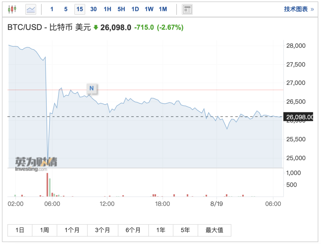 币圈上演“惊魂一幕”。 8月18日凌晨,大型加密货币突然集体暴跌,比特币短线一度跌超3000美元,日内最大跌幅超13%,一度跌穿2.5万美元关口。据coinglass数据显示,24小时内,共有17.1万人爆仓,爆仓总金额达10.18亿美元(约合人民币74亿元)。 美股市场也将迎来“超级风暴”。当地时间8月18日,机构报告指出,约有2.2万亿美元(约合人民币16万亿元)与股票和指数挂钩的较长期期权合约将于当日到期。对此,高盛在最近的报告中警告称,8月的OpEx将加剧近期的市场抛售。 另外,“股神”巴菲特的两个最新举动突然刷屏。其一是,巴菲特本周向一家未公开名称的慈善机构捐赠了价值近2700万美元的伯克希尔股票;其二是,伯克希尔·哈撒韦本周披露的监管文件显示,该公司增持美国房地产巨头霍顿(DR Horton)公司至600万股,价值超过7亿美元(约合人民币51亿元)。 突然崩盘 8月18日凌晨,大型加密货币突然集体暴跌,比特币短线一度跌超3000美元,日内最大跌幅超13%,一度跌穿2.5万美元关口,截至发稿,比特币最新价格回升至26086美元,较7月高点累计跌幅超18%;另外,以太坊日内最大跌幅超13%,一度下破1600美元关口,现报1662美元。 ![]() 据coinglass数据显示,最近24小时,共有17.1万人爆仓,爆仓总金额达10.18亿美元(约合人民币74亿元)。 消息面上,《华尔街日报》关于SpaceX出售比特币的报道,在美股盘后开始在社交媒体上发酵。报道指出,文件显示,马斯克旗下的SpaceX 在去年和2021年总共减记了价值3.73 亿美元的比特币,并且已经出售这些加密货币。另外,特斯拉对其持有的比特币也采取了类似的做法。 目前,《华尔街日报》的报道尚未确认3.73亿美元比特币是否已经全部出售,出售时间也不明确。目前市场猜测,本次下跌可能是受到马斯克旗下SpaceX出售比特币的驱动。 另外,根据特斯拉的财报显示,该公司在2022年第二季度以9.36亿美元的价格卖出了3万多枚比特币,约占其最初15亿美元比特币持仓的75%。出售时间不详。截至今年第二季度末,特斯拉持有的数字资产价值为 1.84 亿美元(现行会计准则不允许计入此类收益,比特币估值仍保持不变),与 2023 年第一季度持平,特斯拉的比特币持仓数量已连续四个季度维持一致。 马斯克作为全球富豪之一,经常在社交媒体上发表关于特定加密货币的评论,包括狗狗币和比特币,直接引发相关虚拟货币价格剧烈波动。 另外,华尔街分析人士认为,全球各国国债收益率持续攀升也为加密货币市场带来压力,以美国为例,美国30年期国债利率一度升至4.42%,刷新2011年以来的最高水平;10年期国债收益率最高升至4.32%,为连续第六个交易日走高,进一步升至了2007年以来的最高收盘水平。这不仅抑制了加密货币价格,而且对传统市场的风险资产造成打击。 “超级风暴”来袭 美股市场将迎来“超级风暴”。 当地时间8月18日,衍生品分析公司Asym 500的创始人Rocky Fishman在报告中指出,约有2.2万亿美元(约合人民币16万亿元)与股票和指数挂钩的较长期期权合约将于当日到期。 需要介绍的是,一直以来,月度OpEx(期权到期)都以引发股市剧烈波动而备受关注,为交易员和做市商重组大量头寸提供了流动性窗口,市场往往会集体重新评估他们的风险敞口,或展期现有头寸,或开始新头寸,而这一过程将导致交易量大幅飙升,并可能导致股市的突然剧烈波动。 对此,高盛在最近的报告中警告称,8月的OpEx将加剧近期的市场抛售。 高盛进一步指出,做市商的头寸变化也值得关注。作为期权交易的另一方,做市商会通过买入期权,同时用标的资产进行delta对冲,以达到组合的市场中性目的,这称为“gamma对冲”。 高盛警告称,做市商在上周转为“做空gamma”,为今年以来的首次,鉴于做市商的立场,他们或放大市场波动,因此当前美股的回调可能迅速恶化。 值得一提的是,杰克逊霍尔(Jackson Hole)全球央行年会将于8月26日(下周五)重磅来袭,这一关键窗口期前夕,做市商无疑会更加谨慎。如果股市回调,做市商可能会通过抛售、平仓等方式放大下跌趋势导致股市进一步下跌。 对于美股投资者而言,挑战或许远不止于此。高盛、瑞银都在报告中警告称,零日期权看跌期权(0DTE)交易激增,导致投资者大举抛售,加速了美股8月的跌势。 野村估算,8月才过半,就有四天的0DTE交易量跻身十大最高交易日之列。花旗发现,最近交易员青睐的零日期权从看涨转变为看跌。 巴菲特最新出手 关键时刻,“股神”巴菲特的最新举动,突然刷屏。 当地时间周三晚间,在向美国证券交易委员会提交的文件中,伯克希尔·哈撒韦(Berkshire Hathaway Inc)披露,巴菲特当地时间8月15日捐赠了50股伯克希尔A类股。 伯克希尔A类股是美股市场上最昂贵的股票,以最新股价538107美元计算,巴菲特此次捐赠的市值约2700万美元(约合人民币2亿元)。 在最新的捐赠行动后,巴菲特仍持有218237股伯克希尔A类股,持股比例约为15%。 巴菲特没有透露收到他捐款的这家慈善机构的名称。 巴菲特每年都会向比尔及梅琳达·盖茨基金会和其家族管理的四个慈善机构进行慈善捐款,自2006年以来,巴菲特向这5家慈善机构累计捐款金额超过510亿美元(约合人民币3700亿元)。 《福布斯》杂志最新估计,目前巴菲特的净资产为1183亿美元,在全球富豪榜上排名第五。 对于慈善事业,巴菲特曾表示,他将把超过99%的个人财富用于慈善事业。 另外,巴菲特在投资领域的最新动向也引发关注。本周,伯克希尔·