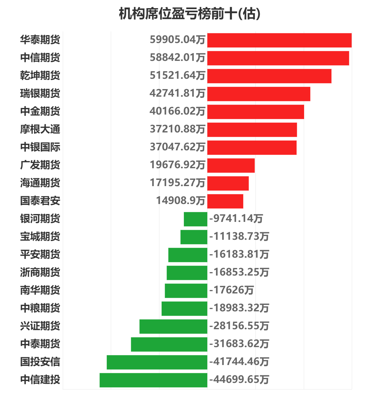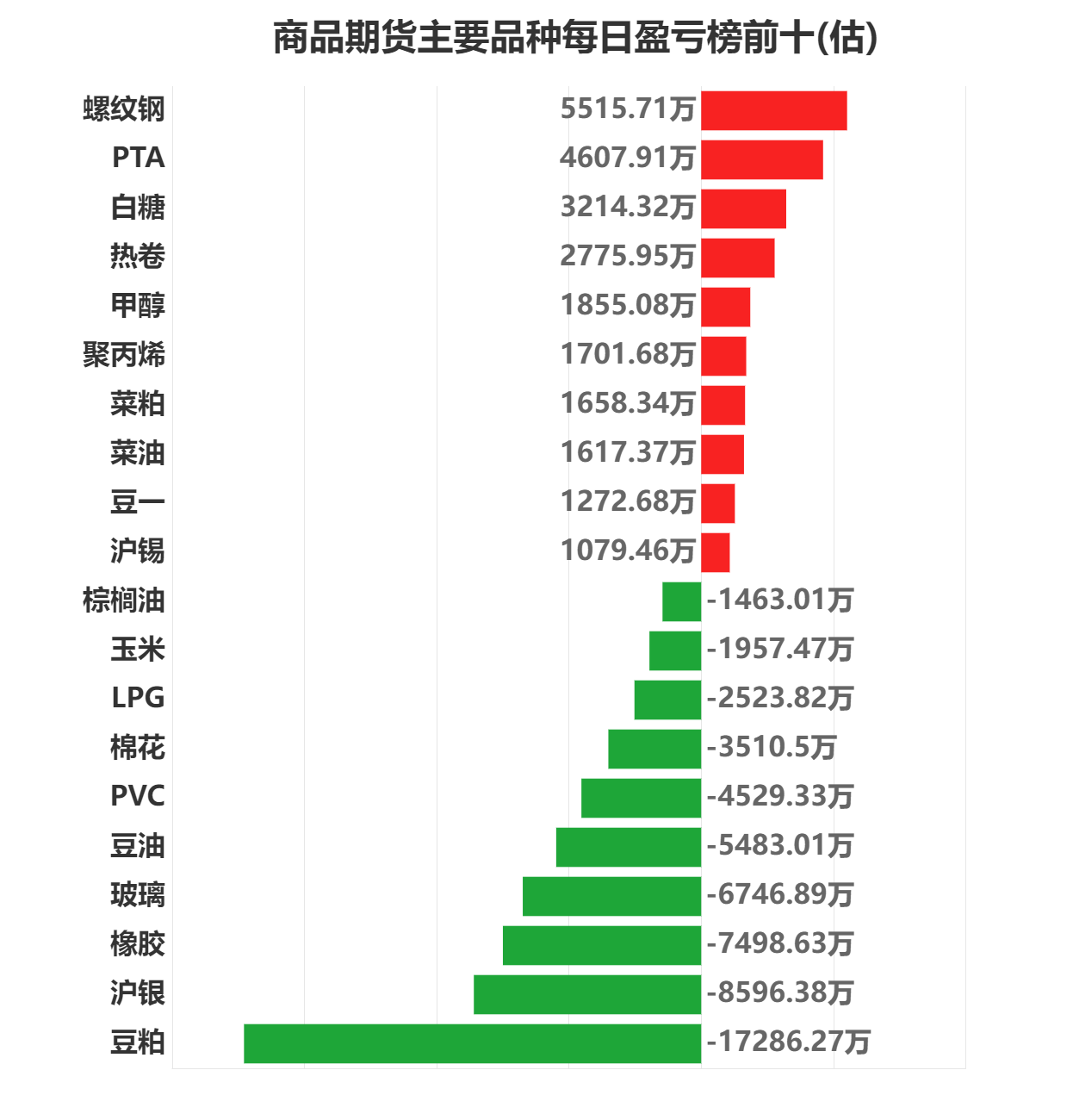 ![]() ![]() ![]() 品种盈亏榜:今日商品期货中螺纹钢盈利第一,为5515.71万元。 豆粕亏损第一,为17286.27万元。 ![]() 就螺纹钢而言,今日盈利前三席位为国泰君安、国贸期货、永安期货,分别盈利4297.21万元、2685.85万元、2497.37万元。 今日亏损前三席位为浙商期货、山金期货、中信建投,分别亏损3610.39万元、3056.19万元、2946.64万元。 ![]() 就豆粕而言,今日盈利前三席位为华泰期货、乾坤期货、浙商期货,分别盈利10547.43万元、9257.30万元、5860.44万元。 今日亏损前三席位为国投安信、广发期货、中粮期货,分别亏损16844.55万元、15624.46万元、15433.90万元。 ![]() 席位盈亏榜:今日机构席位中华泰期货盈利第一,为59905.04万元。 中信建投亏损第一,为44699.65万元。 ![]() 就华泰期货席位而言,今日盈利前三品种为中证500股指、豆粕、沪深,分别盈利32350.08万元、10547.43万元、7943.22万元。 今日亏损前三品种为菜粕、上证、三十债,分别亏损3366.94万元、3248.20万元、1338.47万元。 ![]() 就中信建投席位而言,今日盈利前三品种为棉花、三十债、生猪,分别盈利695.67万元、321.36万元、309.12万元。 今日亏损前三品种为中证500股指、中证1000股指、纯碱,分别亏损15557.10万元、13374.38万元、4140.43万元。 ![]() 注:可通过点击东方财富期货APP资讯页面“龙虎榜”及东方财富期货PC端左侧“龙虎榜”查看各类机构持仓及盈亏榜单信息。 ![]() ![]() 以上图表数据来源:东方财富Choice (文章来源:东方财富研究中心) (责任编辑:admin) |