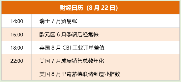 财政部:为加快海河流域性特大洪水灾后恢复重建,财政部、水利部再次预拨5亿元,支持天津、河北对国家蓄滞洪区运用期间群众的农作物、专业养殖、经济林、住房、家庭农业生产机械等水毁损失予以补偿,帮助灾区尽快恢复正常生产生活秩序,全力保障人民群众生命财产安全。 商务部:预计全年服务进出口规模将保持增长。面对复杂严峻的外部环境,我国服务贸易显示出较强的发展韧性,保持较快增长。我国服务业基础不断夯实,服务领域对外开放持续深化,数字化、绿色化“双轮驱动”服务贸易创新发展,有利因素在不断积累。预计全年服务进出口规模将保持增长,贸易结构将持续优化。 新华社:今年前7个月,我国与俄罗斯、巴西、印度、南非四个金砖国家进出口总值2.38万亿元,同比增长19.1%,远超同期我国外贸0.4%的整体增速,占我国外贸进出口比重提升1.6个百分点至10.1%。 发改委:部署有关省份在防汛救灾和灾后恢复重建中大力实施以工代赈,切实发挥“赈”的政策功能作用,全力支持受灾地区统筹做好灾后恢复重建和巩固拓展脱贫攻坚成果工作。要依托以工代赈项目建设积极开展以工代训,提升受灾群众就业技能,合理设置公益性岗位。 经济参考报:新一轮国企改革提升行动已启动,众多央企正在制定集团层面的改革实施方案,有望在8月底前完成。新一轮国企改革提升行动的重要任务之一是优化国有经济布局和结构,重组整合仍将是重要抓手。业内预计后续围绕15个重点战略性新兴产业的并购重组将更加活跃。 海关总署:自2022年5月以来,猴痘疫情持续在全球多个区域广泛流行。近期,欧洲、美洲和西太平洋区域猴痘疫情呈上升趋势。特发布《关于防止猴痘疫情传入我国的公告》,来自猴痘疫情发生国家(地区)的人员如出现发热等相应症状,入境时应主动向海关申报。 香港政府统计处:7月综合消费物价指数同比上涨1.8%,较今年6月的1.9%略低。剔除政府单次纾困措施影响,基本通胀率为1.6%,也较6月的1.7%略低。在各类消费项目中,7月价格同比上涨的类别为烟酒(上升18.4%)、电力、燃气及水(上升9.9%)、衣履(上升6.6%)等。 央视新闻:日本首相岸田文雄在记者会上称,福岛第一核电站核污染水排海已获得渔民的一定理解,计划最早从24日开始将核污染水排入海洋,目前正在对此进行最终协调。另据日本共同社报道,日本政府将于22日10时召开相关阁僚会议,决定福岛第一核电站核污染水排海时间。