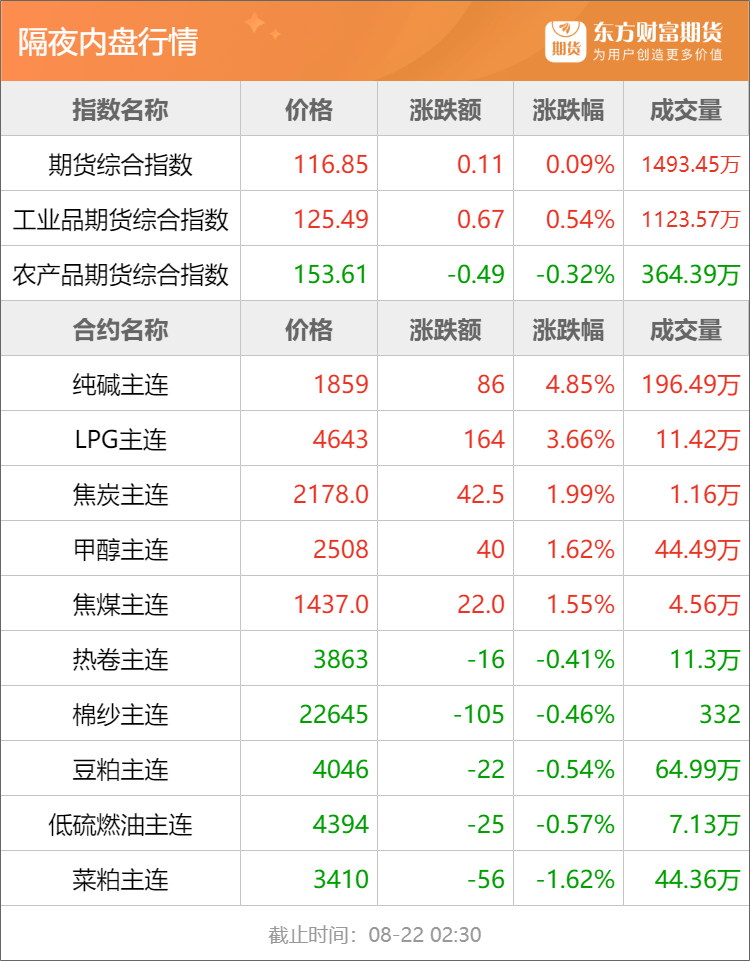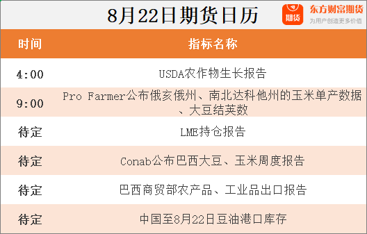 东方财富期货早餐 8月22日 周二