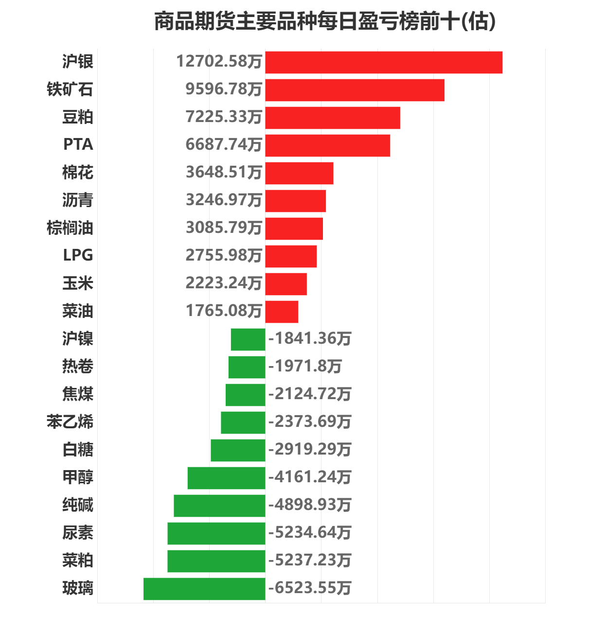 每日期货龙虎榜,带你深度了解市场。 市场一览:周二商品期货综合指数涨跌幅为0.0%,日内资金净流出54.45亿元。 市场成交量为3711.25万手,成交额为2.07万亿元。 持仓量为4203.73万手,较前一交易日减少62.85万手。 市场成交量前十和持仓量前十如下图所示: ![]() ![]() ![]() 品种盈亏榜:今日商品期货中沪银盈利第一,为12702.58万元。 玻璃亏损第一,为6523.55万元。 ![]() 就沪银而言,今日盈利前三席位为中财期货、宝城期货、中信期货,分别盈利5800.01万元、3093.92万元、1671.19万元。 今日亏损前三席位为五矿期货、国信期货、国泰君安,分别亏损1423.81万元、794.80万元、779.04万元。 ![]() 就玻璃而言,今日盈利前三席位为国投安信、先锋期货、中信建投,分别盈利2000.87万元、382.16万元、329.91万元。 今日亏损前三席位为国泰君安、徽商期货、中信期货,分别亏损1920.91万元、1857.87万元、1417.71万元。 ![]() 席位盈亏榜:今日机构席位中招商期货盈利第一,为11329.89万元。 一德期货亏损第一,为11044.61万元。 ![]() 就招商期货席位而言,今日盈利前三品种为纯碱、十债、五债,分别盈利3689.47万元、3203.29万元、2558.22万元。 今日亏损前三品种为豆粕、三十债、沪铝,分别亏损992.80万元、252.28万元、233.03万元。 ![]() 就一德期货席位而言,今日盈利前三品种为沪银、LPG、尿素,分别盈利1101.81万元、694.77万元、460.31万元。 今日亏损前三品种为纯碱、铁矿石、焦煤,分别亏损6509.59万元、2530.47万元、1569.31万元。 ![]() (文章来源:东方财富研究中心) (责任编辑:admin) |