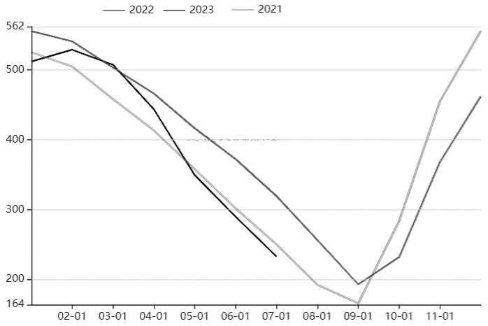 近期,棉花期货2401合约在17000—17500元/吨区间振荡。尽管美国农业部(UDSA)8月供需报告超预期利多,但是难敌宏观面情绪低迷,棉价继续向上受到压制。 USDA 8月报告重点调减美棉产量 根据美国农业部8月供需报告,受美国干旱抬头、乌兹别克斯坦极端高温天气影响,2023/2024年度全球棉花产量将减少59.3万吨。消费方面,预计2023/2024年度我国和土耳其消费量调高,全球棉花消费量整体调增10.7万吨。进出口贸易流增加,预计最终期末库存减少64万吨。 纵观此次USDA 8月供需报告,重点调整均在美棉产量方面,其他国家均无明显调整。此外,单产下调6.23%,主要是因为得州干旱带来单产减少、弃耕率上升。美国2023/2024年度棉花预测产量大幅下调54.6万吨,较7月预测下调15.2%。 美国得州干旱指数自6月下旬开始出现反转,持续一个月以后在7月下旬超过过去5年均值水平,进入8月以后继续上升。截至8月8日,干旱指数达到198,较前一周上调26.9%。考虑到得州干旱指数反弹,并且持续时间已在1个月以上,因此选择在USDA 8月供需报告上对产量进行调整相对合理,只是调整幅度超过市场预期。后期需持续观察得州干旱指数,若干旱得以缓和,不排除再次对美棉产量进行修正。 美棉出口方面,由于美棉产量减少,叠加巴西和澳大利亚替代性增强,报告下调了27.2万吨出口量。此外,消费小幅调减,最终期末库存下调15.2万吨。整体报告影响利多。 我国产量未见大幅调整 对于2023/2024年度,USDA 8月供需报告未对我国棉花产量调整,调增进口5.4万吨,消费量调增10.9万吨,期初库存调减后,整体期末库存下调19.1万吨,对新年度影响中性偏多。同时,根据BCO生产调查最新公布的产量预测,暂时也没有对我国新疆棉花产量做调整,预估 557.2万吨。 4—5月,新疆出现了低温、冰雹等恶劣天气,对于棉花产量的减产影响,目前市场已经充分计价,普遍接受新疆棉花产量在550万吨的预测。因此,当前只有超预期增减才会影响盘面。 从近期新疆实地调研情况来看,新疆高温天气弥补了前期低温推迟的影响,同时今年新疆水资源充足,也及时缓解了高温天气对于棉花生长的负面影响。棉花单产450—500公斤/亩,预期后期产量大概率在550万吨以上。 尽管USDA报告给出了超预期利多,但难敌宏观情绪低迷。外部方面,美债发行高峰,外部利率持续上升,在中美利差拉大背景下,北上资金大幅流出,间接导致国内资本市场低迷。