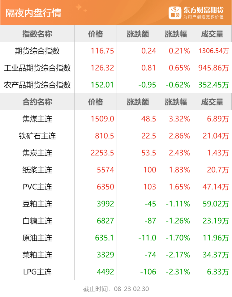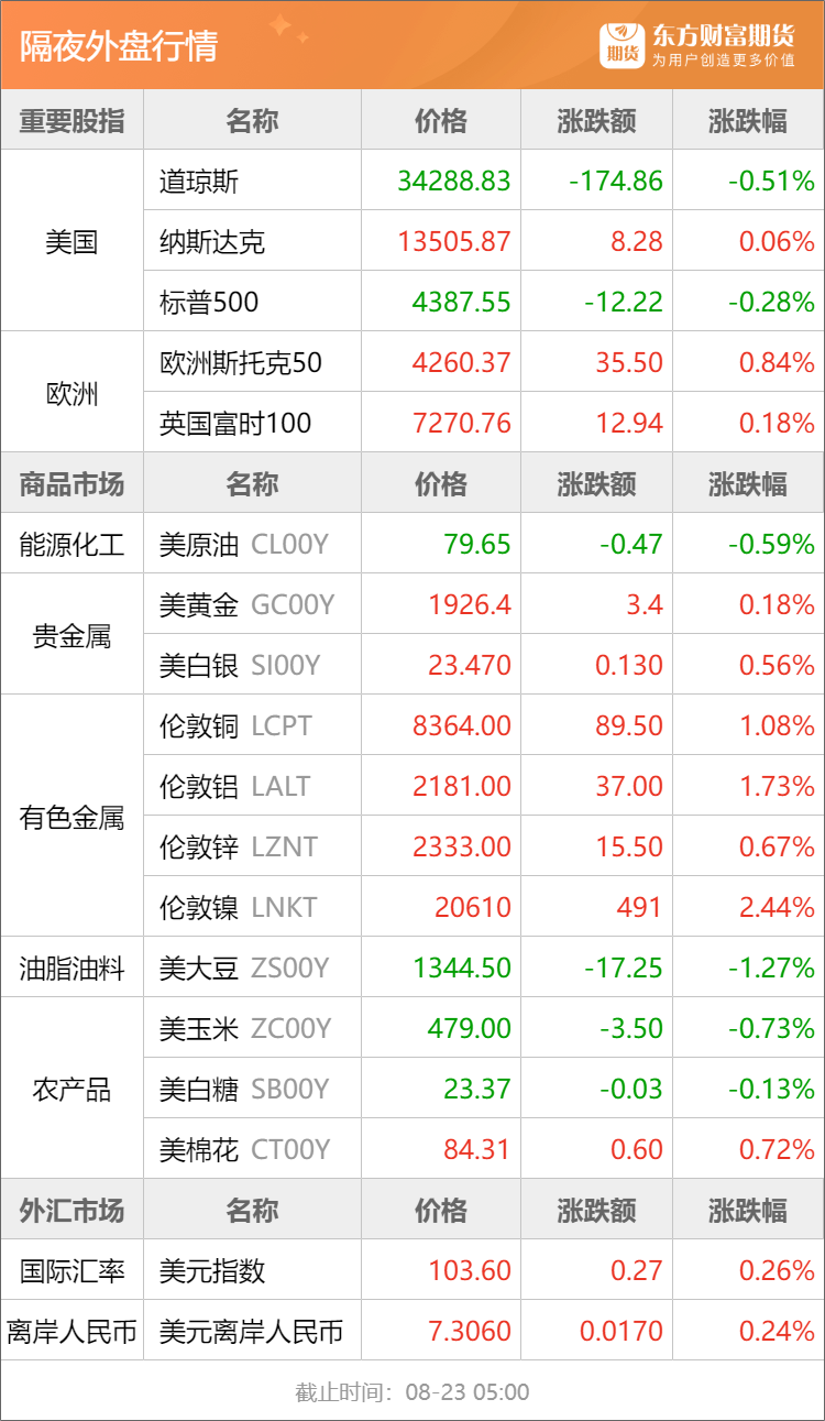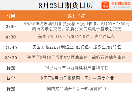 东方财富期货早餐 8月23日 周三