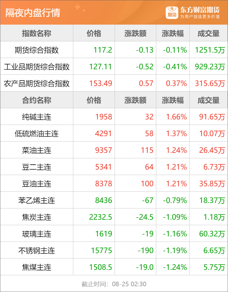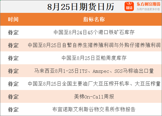 东方财富期货早餐 8月25日 周五