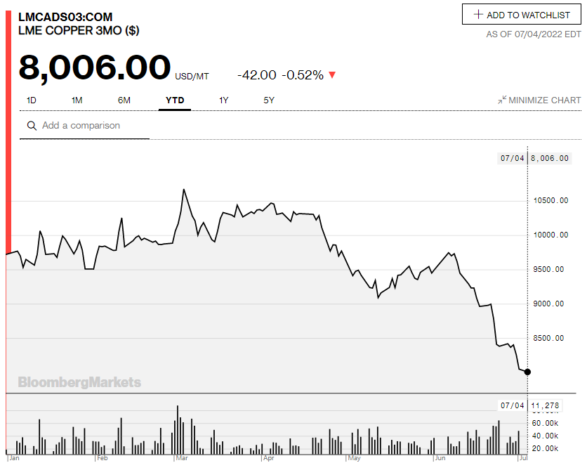 铜价年内已跌20%!大宗商品全线下挫引发“通胀见顶论” 美股迎来转折