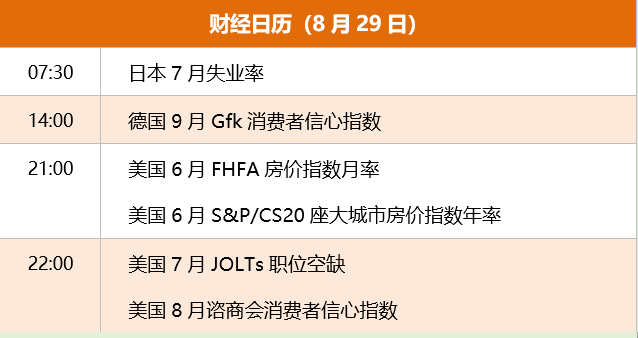 人民币:在岸人民币兑美元北京时间03:00收报7.2900,较上一交易日夜盘收盘跌35点。成交量333.88亿美元。 美元:周一(8月28日)纽约尾盘,ICE美元指数跌0.05%,报104.025点,日内交投区间为104.211-103.977点。彭博美元指数跌0.05%,报1242.67点,日内交投区间为1243.92-1241.49点。美元兑日元涨0.06%,报146.53,纽约上午曾涨至146.74,逼近2022年11月9日顶部146.80和当年10月21日顶部151.95。 券商中国:第十届东盟财长和央行行长会议在印尼首都雅加达举办期间,印尼央行与马来西亚央行和泰国央行签署了有关本币交易的谅解备忘录,以减少对美元的依赖。印尼此前已与东盟成员国泰国、马来西亚建立了本币结算合作。新签署的协议是本币结算的扩充,即使用各自的货币进行贸易和直接投资,企业不需要使用美元作为中介。 新华财经:日本央行行长植田和男在杰克逊霍尔年会表示,价格涨幅仍慢于央行目标,这也解释了为何官员仍坚持实施当前的货币政策。植田和男表示,7月不包括生鲜食品的按年计通胀率为3.1%,“预计到年底将下降”。“日本基本通胀仍然略低于我们2%的目标,日本央行坚持目前的货币宽松框架。”