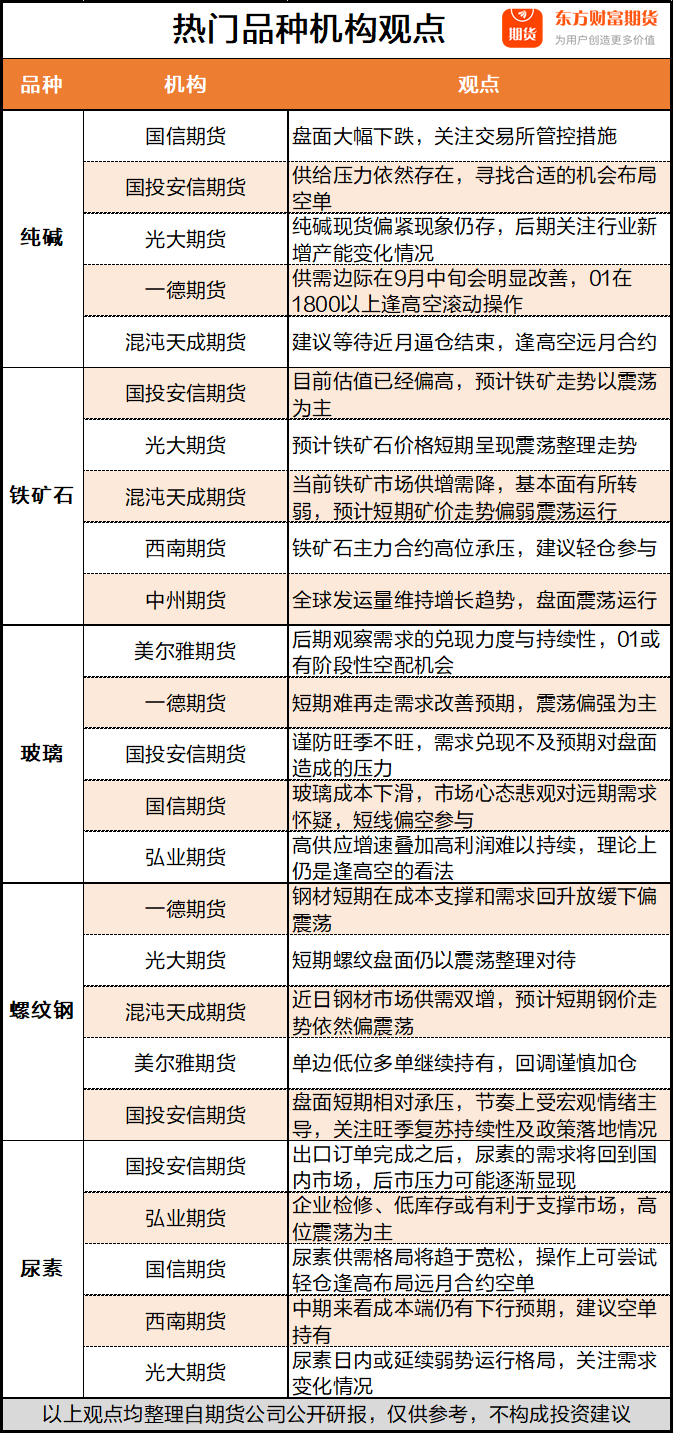 热门品种机构观点![]() 黑色系期货粗钢平控的压力仍在 双焦上方继续承压(美尔雅期货) 螺纹钢当前供需变化不大 更多需要关注消息面对于盘面的影响(弘业期货) 农产品期货印度、泰国减产预期较强 中长期糖价仍有上涨空间(国投安信期货) 新货供应紧张 新玉米上市前玉米期价延续震荡偏强表现(光大期货) 有色/贵金属期货9月“旺季不旺”已经初步显现 预计碳酸锂价格将维持偏弱走势(国信期货) 贵金属建议观望 重点关注非农就业数据(五矿期货) 能化期货纯碱远月仍是过剩格局不变 上涨之后扩大下跌空间(混沌天成期货) 供应压力增加 PTA谨慎偏多思路对待(西南期货) (文章来源:东方财富研究中心) (责任编辑:admin) |