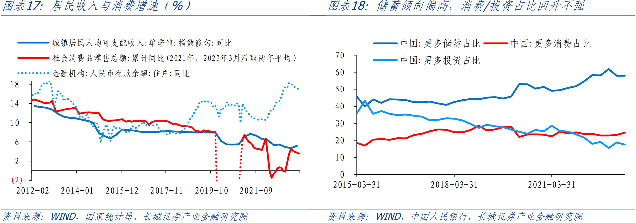 ![]() 如果私人部门明显恢复,可以使得GDP最终消费的拉动作用进一步凸显,消费支出能够拉动GDP约4.2个百分点,剩余的资本形成总额拉动GDP增长约1.4个百分点。这需要私人消费与投资发力,社会消费品零售总额同比和商品房销售额全年同比分别可能需达到8%和-3%(基准情形分别为6.5%和-5%)。社零同比增长8%意味着2022/2023两年平均增速达到4%左右。而今年前7月社零累计同比增长7.3%,对应两年平均仅为3.6%,因此剩余月份社零增速需明显提升,而全年社零总额应比基准情形增加约6600亿元。实际上私人消费与投资提升的难度较大:尽管今年城镇居民人均可支配收入增速有所回升,居民消费具备一定潜力。但消费潜力的释放与收入增长并非简单的线性关系,还受到消费倾向等方面影响。央行城镇储户问卷调查显示,直到今年二季度居民储蓄倾向并未明显回落,消费倾向并无明显回升。在收入增长偏慢,储蓄倾向偏高的条件下,提升居民消费投资的难度较大。