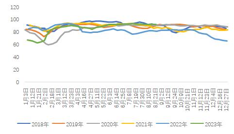 数据来源:CCF,兴证期货研究咨询部 需求端看,聚酯负荷仍处于高位,截止2023年8月24日聚酯负荷回升至92.8%,环比持平,处于高位。从现金流来看,随着近期原料有所反弹,聚酯现金流有所回落,聚酯现金流有所承压。库存上,截止2023年8月24日,聚酯企业库存变化不大,长丝企业库存下降0.09天至17.5天,短纤企业库存7.29天,变化不大。总体聚酯企业库存变化不大。江浙织机开工率延续小幅回升,截止2023年8月24日,江浙织机开工率小幅回升至71%。总体看,近期江浙织机及聚酯开工均处于高位,需求尚可,但旺季或也难有大作为,往年旺季主要靠双十一带动,但从去年双十一表现看已经不能有太大期待。另外,亚运会将影响下游开工,据咨询统计目前明确要停的有联达20万吨,恒逸逸暻75万+聚合物60万,以及余萧绍一些企业有减产30%的口头说法,预计后期聚酯负荷将有所承压。 图表3 聚酯负荷