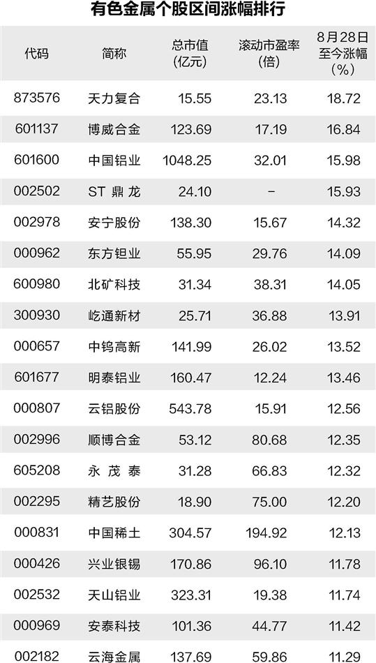 有色金属迎顺周期行情 板块估值降至历史低位
