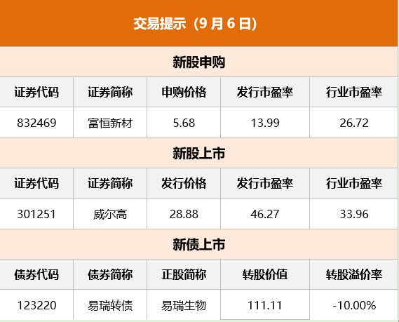1、证券时报:证监会副主席方星海谈期货行业高质量发展时表示,要加强对高频交易等新型交易行为的监管。方星海在中国期货业协会第六次会员大会上表示,要确保市场平稳运行,以市场稳促进功能提升。加强对高频交易等新型交易行为的监管,加强期现联动监管,坚决防止过度投机,引导资本在期货市场规范运作。 2、工信微报:工信部、财政部联合印发《电子信息制造业2023—2024年稳增长行动方案》。《行动方案》提出,2023—2024年计算机、通信和其他电子设备制造业增加值平均增速5%左右,电子信息制造业规模以上企业营业收入突破24万亿元。2024年,我国手机市场5G手机出货量占比超过85%,75英寸及以上彩色电视机市场份额超过25%,太阳能电池产量超过450吉瓦,高端产品供给能力进一步提升,新增长点不断涌现。 3、界面新闻:《郑州市优化生育政策促进人口长期均衡发展实施办法》9月1日起全面启动实施。政策规定,对新生儿入户郑州市的一孩、二孩、三孩及以上家庭分别一次性发放2000元、5000元、15000元的育儿补贴。 4、南方Plus:广东省人社厅日前发布《关于进一步促进我省养老保险第三支柱高质量发展的若干措施(征求意见稿)》公开征求意见,明确指出全力推进个人养老金制度全面实施,强化个人养老金政策及金融产品宣传,为全省全域实施个人养老金制度营造良好环境。 5、央视新闻:当地时间9月5日,英国第二大城市伯明翰的市政委员会宣布该市破产。伯明翰市将停止所有新的开支,但保护弱势群体等法定服务除外。伯明翰市政委员会破产与解决同工同酬索赔的7.6亿英镑(折合68.4亿人民币)法案有关。