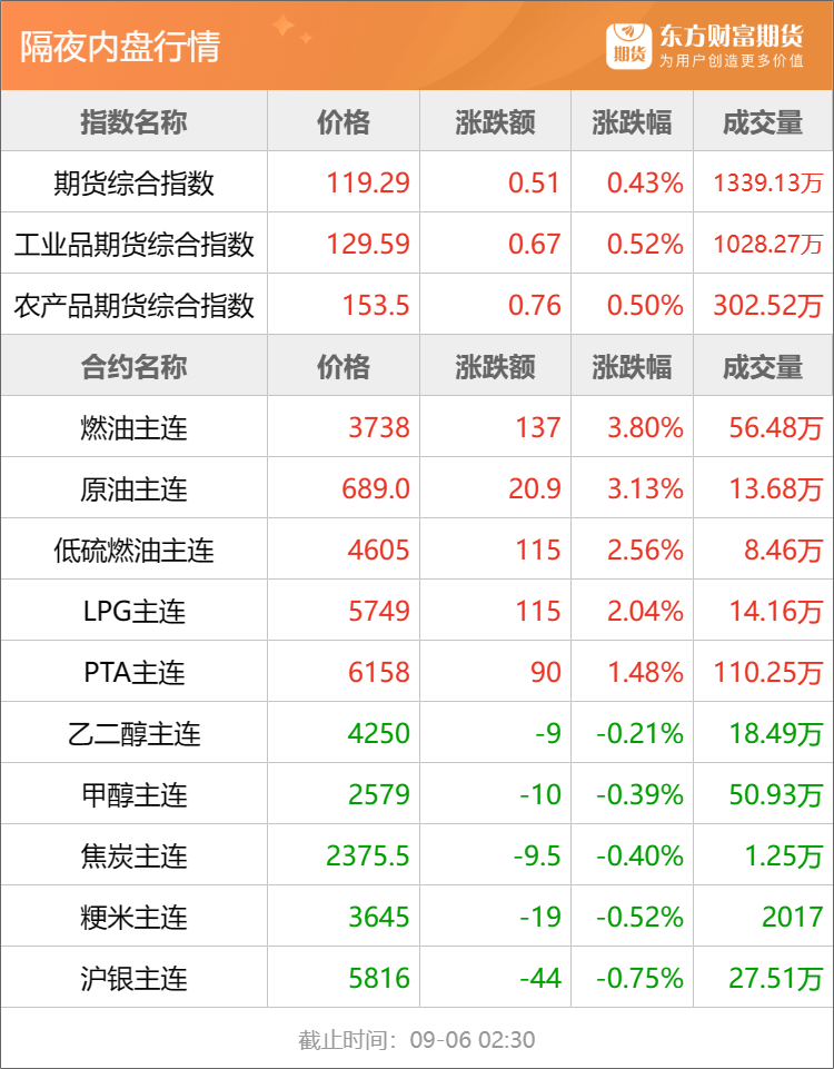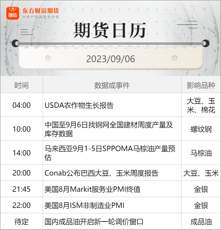 东方财富期货早餐 9月6日 周三