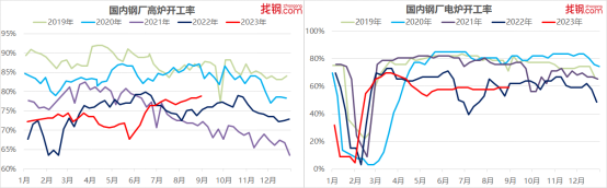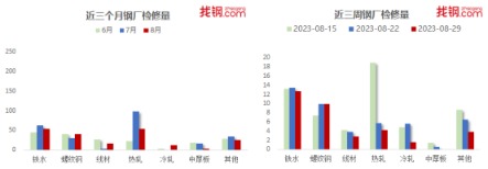 回顾8月份,由于需求淡季扰动仍存,叠加粗钢控产政策暂未落地,铁水产量维持在相对高位,钢材市场延续累库态势,钢材价格整体震荡偏弱运行。展望9月份,宏观政策或进一步加码,市场情绪有所转暖,钢材市场供需格局阶段性改善下,预计9月份钢材市场或震荡走强。 部分钢厂迎来复产钢厂开工率低位小幅回升 从钢厂生产情况来看,唐山钢厂限产影响结束,高炉钢厂开工率小幅回升;而电炉钢厂因继续亏损,开工率维持低位。截至8月30日,找钢网跟踪调研的国内独立电炉钢厂开工率为59.09%,周环比持平,月环比上升1.51个百分点,年同比下降3.03个百分点;高炉方面,找钢网跟踪的国内高炉钢厂开工率为78.91%,周环比上升0.64个百分点,月环比上升2.23个百分点,年同比上升3.51个百分点。 ![]() 钢材生产方面,截至8月30日,找钢网跟踪调研的国内钢材周度总产量为800.82万吨,月环比上升14.69万吨,环比增幅1.9%。 ![]() 从钢厂减产检修情况来看,8月份检修钢厂数量较7月份继续减少,并且同比来看目前钢厂减产力度明显小于去年同期,分品种来看,8月份国内钢厂螺纹钢检修力度加大,但热轧板卷等板材品种检修力度较小,复产较多。据找钢网不完全统计,8月份国内有39家钢厂有检修/计划检修,其中检修影响铁水52.99万吨,螺纹钢40.18 万吨,线材17.2万吨,热轧53.2万吨,冷轧6.00万吨,中厚板3.6万吨,其他25.12万吨。 ![]() ![]() 淡季效应有所减弱下游用钢行业PMI小幅回升 8月份,下游行业PMI综合指数49.83%,较上月环比升0.25个百分点,较去年同比上升0.60个百分点。 8月份,出口需求韧性较强,同时国内扩内需政策持续发力,临近9月传统需求旺季, 8月中下旬国内终端需求环比有所改善,工业行业PMI继续上行,建筑行业PMI由降转增,但受制于房地产行业的拖累,建筑行业PMI增幅相对有限。 ![]() 分行业来看,建筑行业方面,8月份,建筑用钢行业PMI环比微幅回升,同比继续下降。 其中,基建行业,8月份以来,基建稳经济增长的诉求明显提升,相关部门项目批复及投资增速加快,专项债发行进度加速,同时随着地方政府化债措施的跟进,基建行业资金情况有所改善,基建需求整体小幅回升。 房地产行业,虽然保交楼政策下地产端竣工表现亮眼,但由于销售端不畅,地产企业仍面临一定的资金压力,叠加新开工面积的明显下滑,使得8月份房地产行业整体景气指数继续下降,但降幅整体有所收窄。 工业行业方面,8月份工业行业景气指数同环比均继续小幅回升。 汽车行业,受新能源汽车产销和汽车出口继续延续良好态势,叠加国内刺激汽车销售政策,8月份汽车行业产销环比改善,行业景气指数继续回升。 家电行业,8月份扩内需政策继续发力,叠加家电出口同环比继续增长,带动8月份家电行业产销双双回升。 机械行业,8月份,由于地产新开工明显下滑,叠加机械出口高位回落,导致国内机械销量明显下滑,但由于8月份机械出口的环比好转,缓解内需不足的矛盾,8月份机械市场景气度小幅回升。 造船行业,得益于新船订单的饱满,8月份造船行业需求表现亮眼。考虑到当前手持船舶订单量较高,同时受制于国内造船厂产能,预计后期造船行业景气度或继续保持在相对高位。 就9月市场而言,高温多雨天气对需求的影响将明显减弱,同时随着刺激消费政策的不断发力,叠加9月传统需求旺季来临,终端需求环比将迎来阶段性改善,以及出口韧性仍存,预计9月份下游行业PMI综合指数或仍有一定的回升空间,行业景气度有望继续改善。 从钢材表观消费来看,截至8月30日,找钢网跟踪调研的建筑钢材表观消费量322.58万吨,月环比增加27.41万吨,环比增幅9.3%;热轧板卷表观消费量344.52万吨,月环比增加2.42万吨,环比增幅0.7%。 ![]() 钢材总库存小幅累加热轧板卷累库最为明显 从钢材库存来看,8月国内钢材总库存小幅累加,热轧板卷累库最为明显。截至8月30日,找钢网调研的建筑钢材库存总量(钢厂库存+社会库存)为805.54万吨,月环比上升27.81万吨,环比增幅3.6%;热轧板卷库存总量(钢厂库存+社会库存)为362.47万吨,月环比上升23.05万吨,环比增幅6.8%。9月份来看,传统需求旺季来临,终端需求或阶段性改善,预计钢材库存或由增转降,再次迎来去化。 ![]() 电炉钢厂生产继续亏损高炉钢厂建材和板材生产利润有所分化 钢材利润方面,8月份国内钢厂亏损情况有所增加,多数高炉钢厂钢材生产均有小幅盈利,而电炉钢厂仍以亏损为主。分品种来看,建材生产利润下滑,而板材生产利润明显上升,建材和板材利润水平有所分化。截至8月31日,找钢网调研的高炉和电炉钢厂螺纹钢吨钢生产利润分别为1元/吨和-219元/吨,月环比分别上升38元/吨和30元/吨;高炉钢厂热轧板卷吨钢生产利润为72元/吨,月环比下降75元/吨。 ![]() 供需格局阶段性改善钢材市场或震荡走强 展望9月份钢材市场,市场情绪或有所转暖。宏观政策方面,一是随着存量房贷利率的下调,以及多数城市“认房不认贷”的落地,房地产政策仍有进一步放松的空间;二是各地政府相关化债政策陆续出台,配合财政的再融资债券,基建项目资金情况有望逐步得到改善,进一步形成实物工作量;三是汽车、家电消费刺激政策或进一步加码,带动制造业需求逐步回升。 从基本面来看,需求方面,8月中下旬以来钢材成交及表观消费环比小幅回升,9月份钢材市场迎来传统需求旺季,高温多雨等扰动因素减弱,终端需求存在环比改善的预期。供应方面,目前钢材