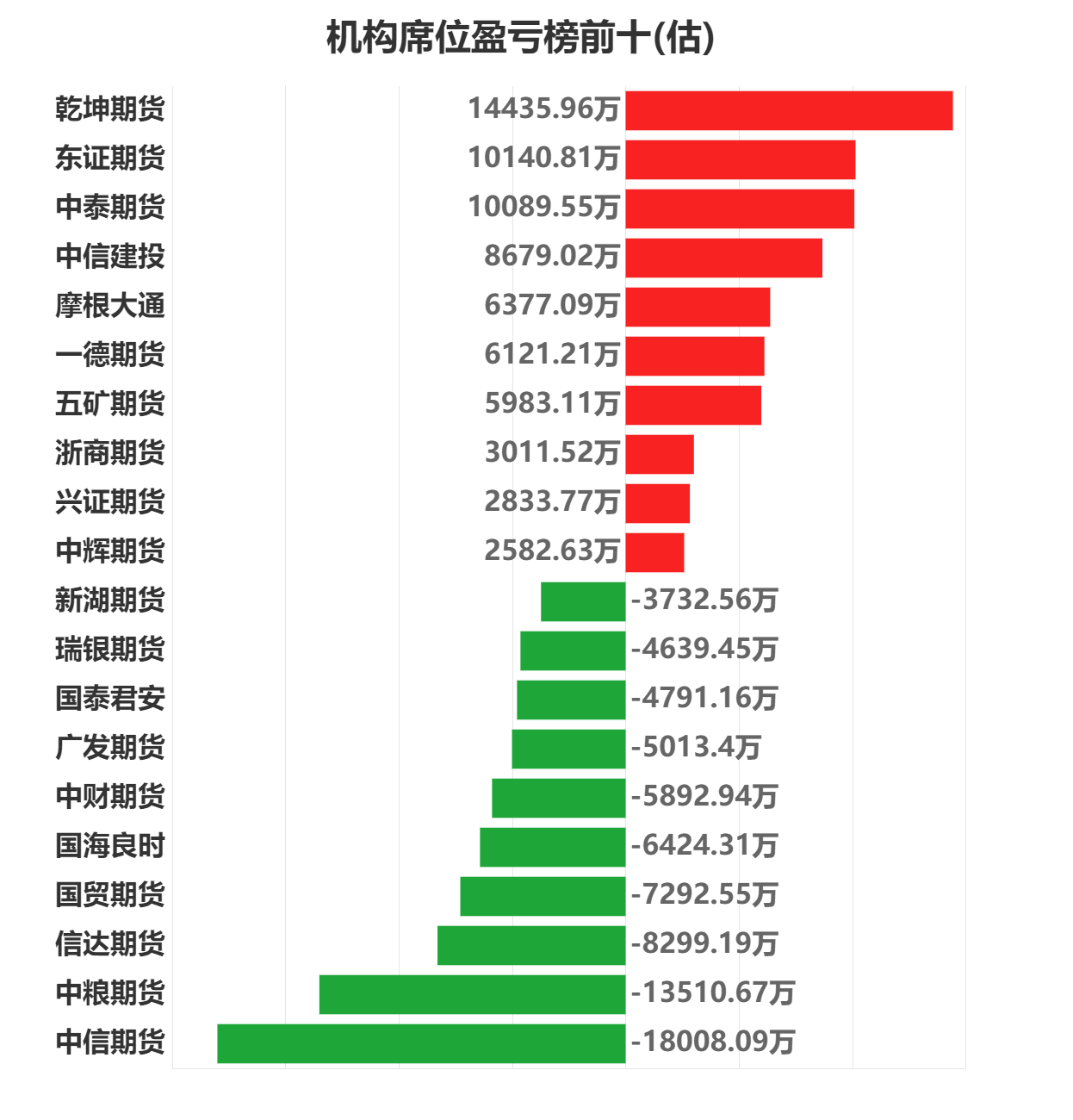 每日期货龙虎榜,带你深度了解市场。 市场一览:周三商品期货综合指数上涨0.42%,日内资金净流入59.44亿元。 市场成交量为3191.04万手,成交额为1.97万亿元。 持仓量为4014.06万手,较前一交易日增加47.14万手。 市场成交量前十和持仓量前十如下图所示: ![]() ![]() ![]() 品种盈亏榜:今日商品期货中螺纹钢盈利第一,为4424.43万元。 纯碱亏损第一,为12862.51万元。 ![]() 就螺纹钢而言,今日盈利前三席位为中泰期货、中信建投、宏源期货,分别盈利1469.00万元、1352.22万元、855.81万元。 今日亏损前三席位为徽商期货、山金期货、银河期货,分别亏损1171.67万元、450.50万元、326.50万元。 ![]() 就纯碱而言,今日盈利前三席位为广发期货、五矿期货、光大期货,分别盈利1821.16万元、1539.04万元、991.48万元。 今日亏损前三席位为国泰君安、民生期货、华泰期货,分别亏损7431.05万元、2849.94万元、2500.01万元。 ![]() 席位盈亏榜:今日机构席位中乾坤期货盈利第一,为14435.96万元。 中信期货亏损第一,为18008.09万元。 ![]() 就乾坤期货席位而言,今日盈利前三品种为PTA、豆粕、菜粕,分别盈利5279.08万元、3989.65万元、1816.62万元。 今日亏损前三品种为中证1000股指、甲醇、沪银,分别亏损2406.13万元、298.78万元、291.77万元。 ![]() 就中信期货席位而言,今日盈利前三品种为沪深、燃油、沪铜,分别盈利1969.94万元、1753.14万元、1473.19万元。 今日亏损前三品种为中证1000股指、十债、沪铅,分别亏损16673.02万元、3849.34万元、2522.49万元。 ![]() 注:可通过点击东方财富期货APP资讯页面“龙虎榜”及东方财富期货PC端左侧“龙虎榜”查看各类机构持仓及盈亏榜单信息。 ![]() ![]() 以上图表数据来源:东方财富Choice (文章来源:东方财富研究中心) (责任编辑:admin) |
