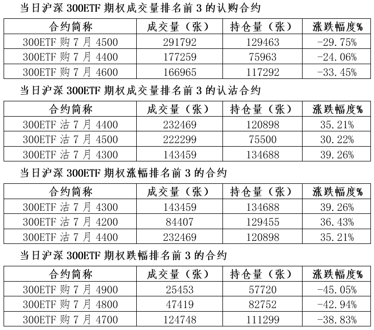 期权每日行情7月6日