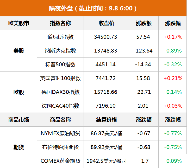 东方财富财经早餐 9月8日周五