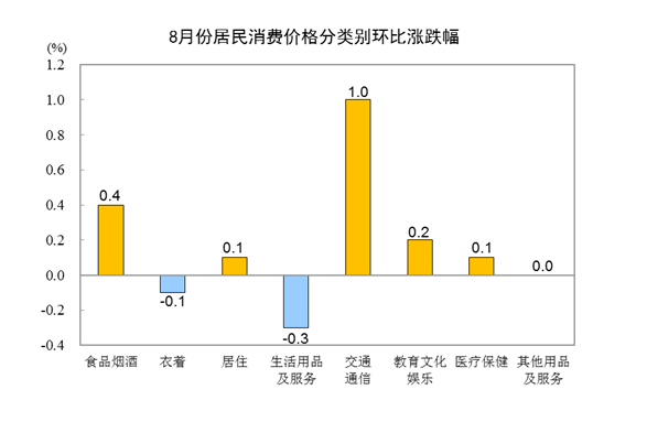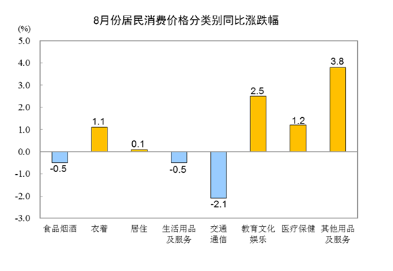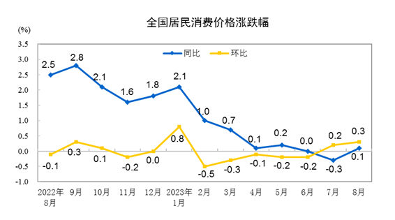国家统计局:8月CPI同比上涨0.1% PPI同比下降3%