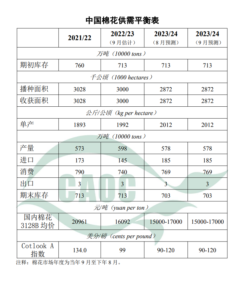 农业农村部:天气对棉花单产的影响有待进一步观察 农业农村部 09月12日 2022/23棉花市场年度结束,国内3128B级棉花均价为每吨16092元,Cotlook A指数均价为每磅99美分,均处于估计区间。本月对2023/24年度棉花产量、进出口、消费、库存预测数据不作调整。至8月末,全国大部棉花处于裂铃吐絮期,新疆部分棉区发育期较往年偏晚5-10天,天气对棉花单产的影响有待进一步观察。 (文章来源:农业农村部) (责任编辑:admin)