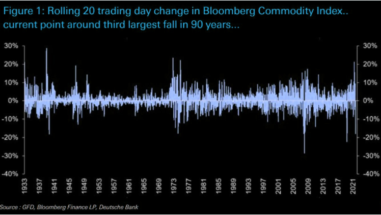 【一图读懂】大宗商品这波崩盘 过去九十年里可以排到第三 华尔街见闻 07月07日 根据德银的统计,彭博大宗商品指数过去20个交易日的跌幅在过去90年里可以排第三。(文章来源:华尔街见闻) (责任编辑:admin)