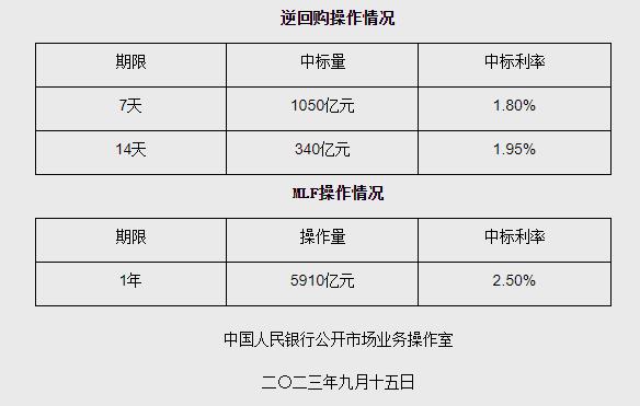 央行开展1年期MLF操作5910亿元 操作利率维持在2.5%不变 央行网站 09月15日 为维护银行体系流动性合理充裕,保持季末流动性平稳,2023年9月15日人民银行开展1390亿元公开市场逆回购操作和5910亿元中期借贷便利(MLF)操作,充分满足了金融机构需求。具体情况如下:(文章来源:央行网站) (责任编辑:admin)
