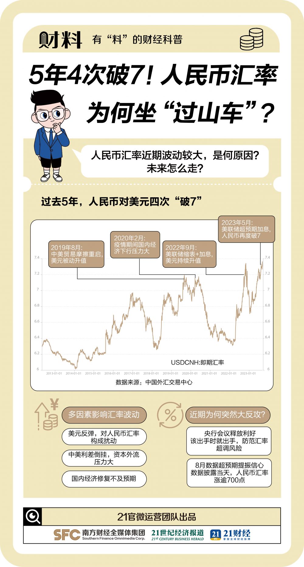 汇率市场,刀光剑影。 2023年9月以来人民币对美元的汇率一度跌破7.3关口,近日一度跌破7.36,更是创下近16年新低。9月11日央行喊话“该出手时就出手”;9月15日,央行下调外汇存准率至4%,再度释放稳汇率信号! 近年来人民币汇率在波动中调整,多次探底与回稳。人民币汇率坐上“过山车”背后有何原因?央行管控汇率的工具箱又有哪些大招?随着政策加强,人民币贬值预期能否扭转? 本期21财料跟你聊一聊。 ![]() ![]() ![]() ![]() (文章来源:21世纪经济报道) (责任编辑:admin) |