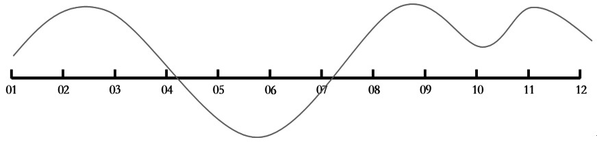 图5为Singular Wavy结构 本文以棉花期货为研究样本,根据前文提出的初步期限周期循环结构图,结合奇异型期限结构,得出棉花期货的期限周期循环过程,如图6所示。本文提出的期限周期理论以Contango结构开始,以Back结构收尾,并循环往复,这也从侧面显示出期货标的价格涨跌的变动周期。
