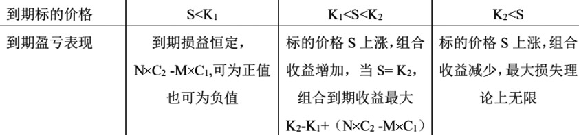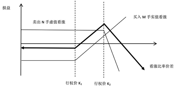 在期权众多组合策略中,价差组合策略通常由权利仓与义务仓,即买入期权与卖出期权构成,具有风险对冲效果。根据组合中行权价、月份以及合约比例划分,常用的有垂直价差策略、水平价差策略、对角价差策略、比率价差策略等。本文重点对垂直比率价差策略的风险敞口进行讨论分析。