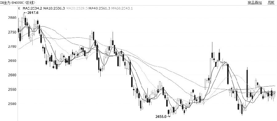 前期,IH主力合约在黄金分割0.5对应的2940点的压力位和0.236对应的2700点的压力位受阻,转而下行。近期,则围绕2500点振荡运行。 均线方面,长期均线和短期均线交织,没有明显的趋势性。指标方面,MACD指标反复黏合,也没有明显的趋势性;KDJ指标、RSI指标金叉后发散,给出看多信号。 结合上述分析判断,IH将继续振荡,等待进一步的信号指引。操作上,观望为主。 IM MACD金叉